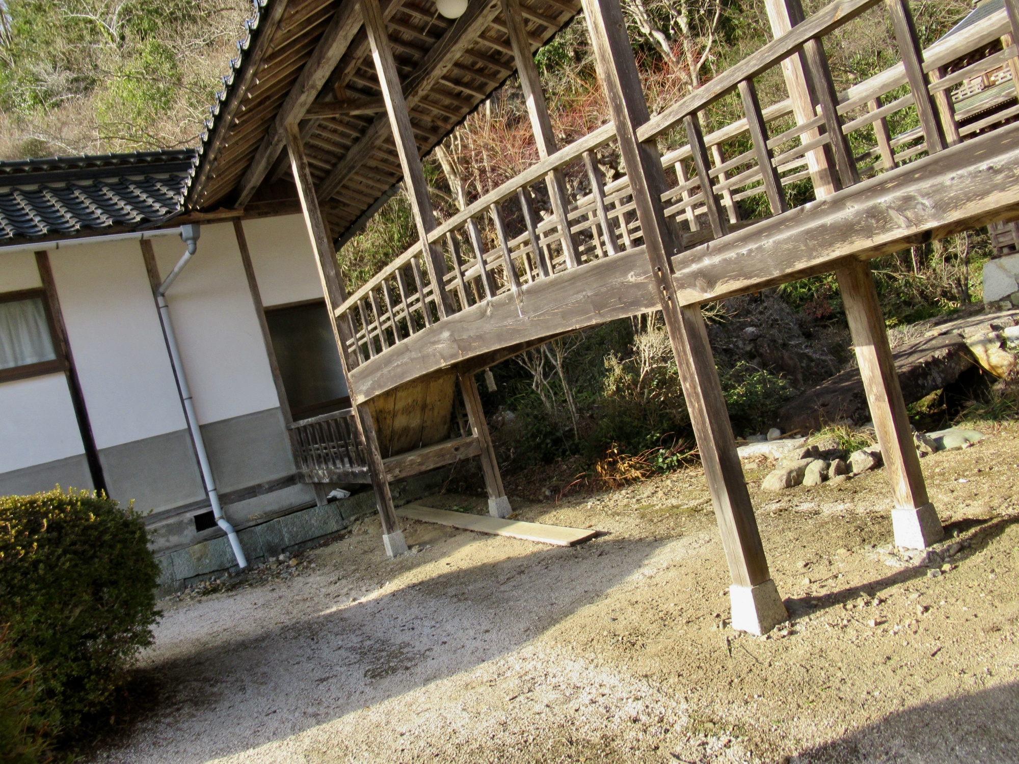 到着……いつもながら、奥の藪っていうのか、庭園でもなく……裏手から.