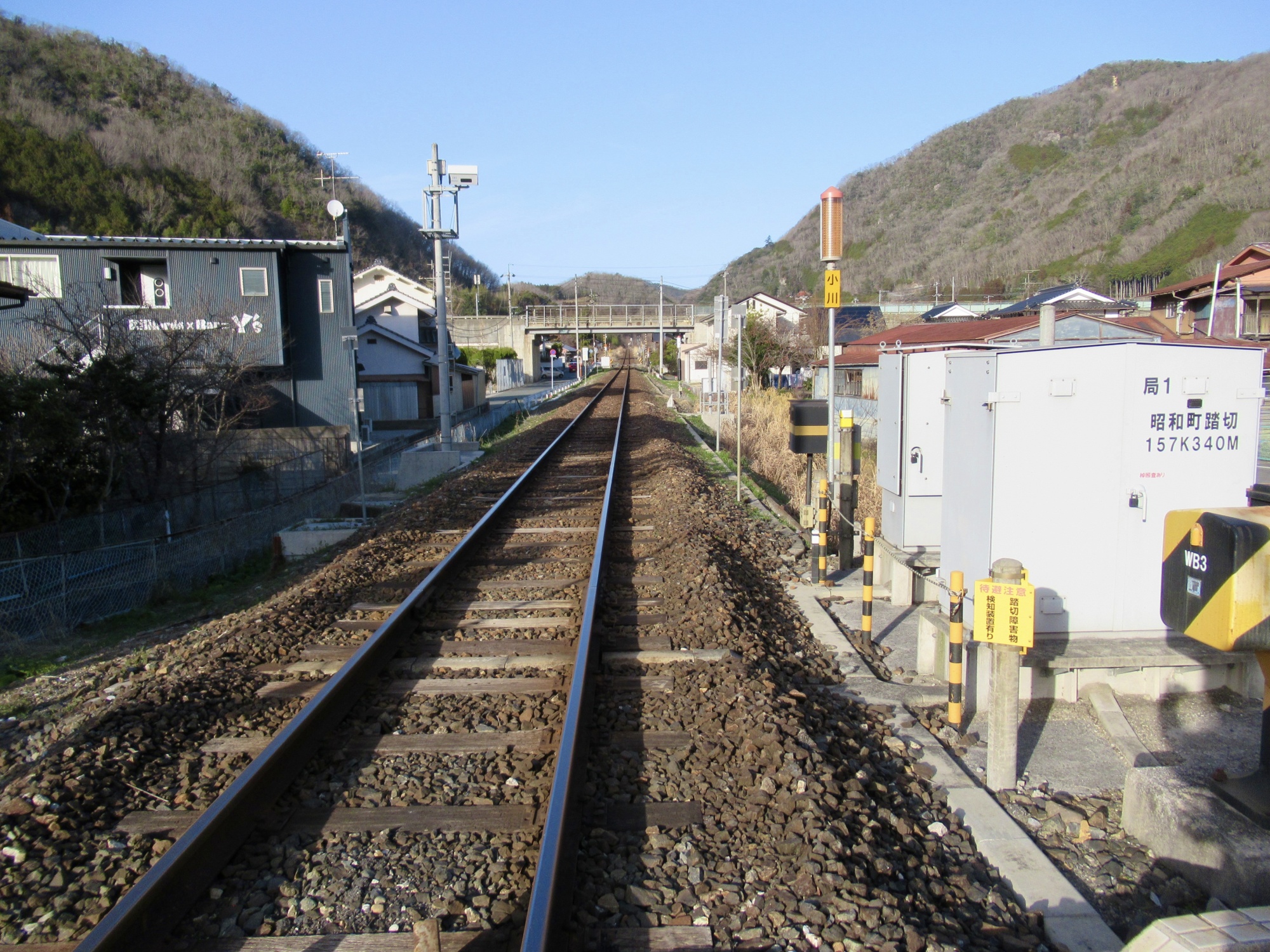 昭和町踏切も姫新線……だいた、昭和で拡がった町並みはこの町名ですよね.