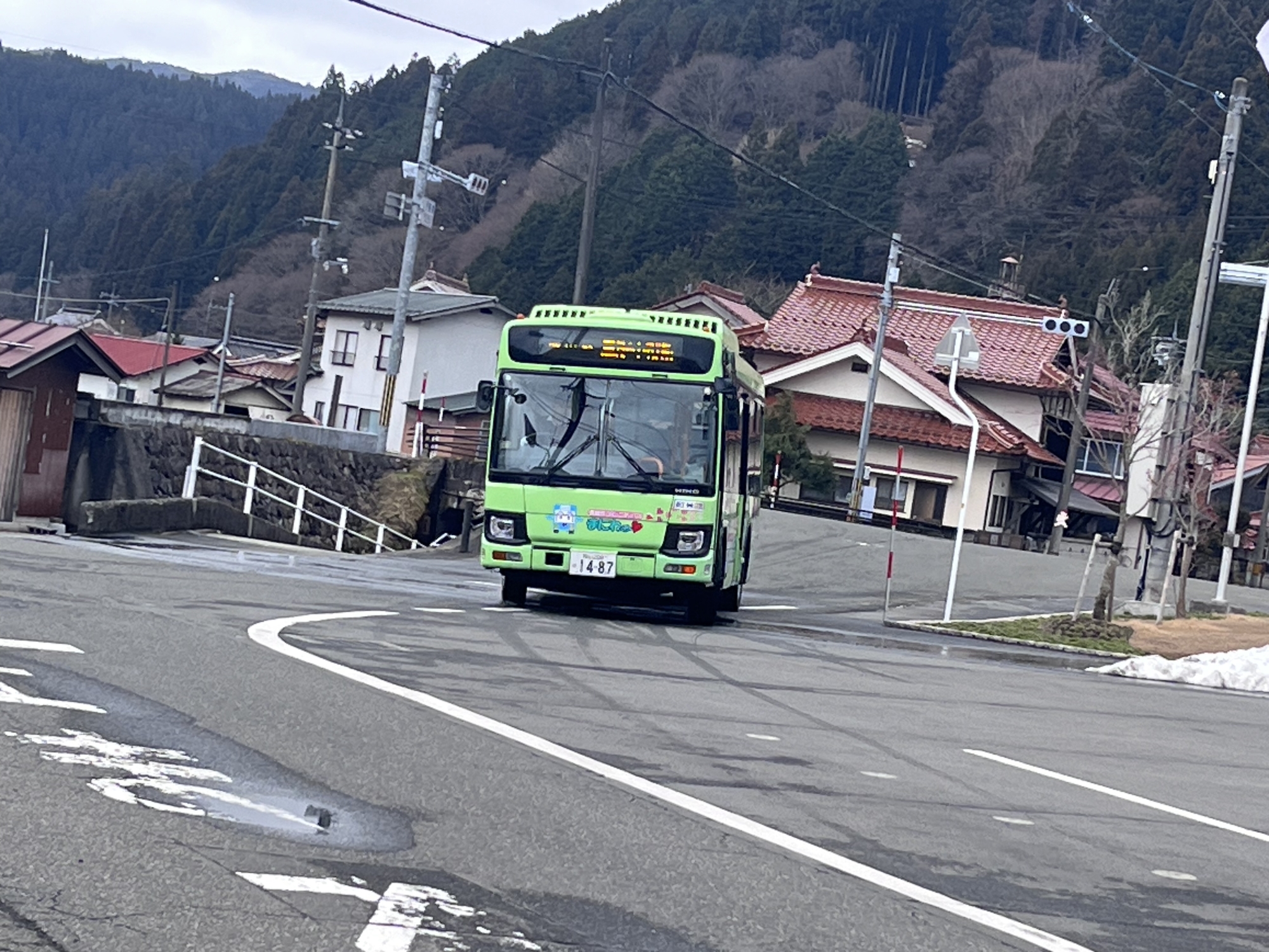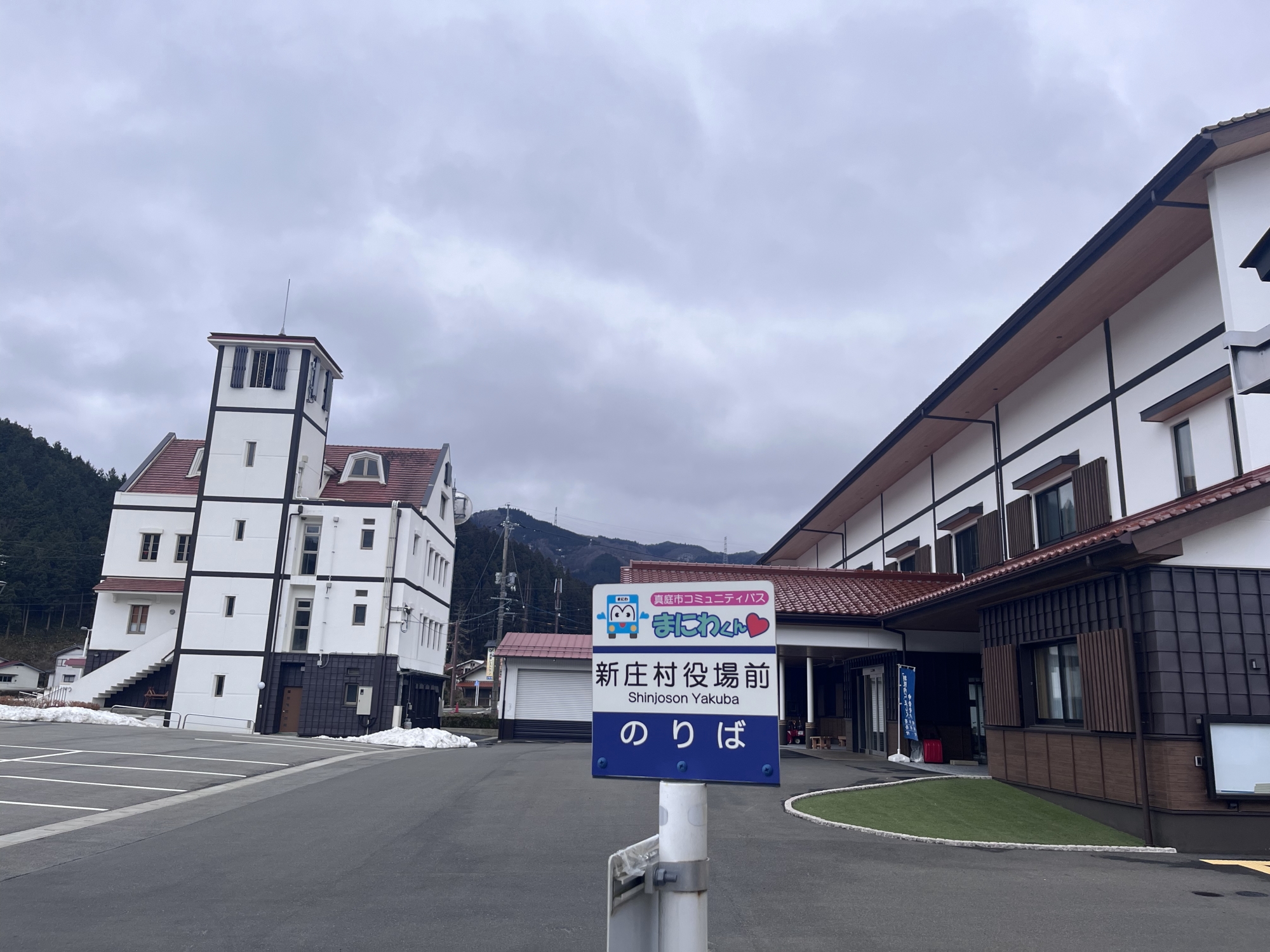 役場前からポスト経由でバス停へ.