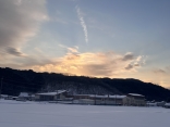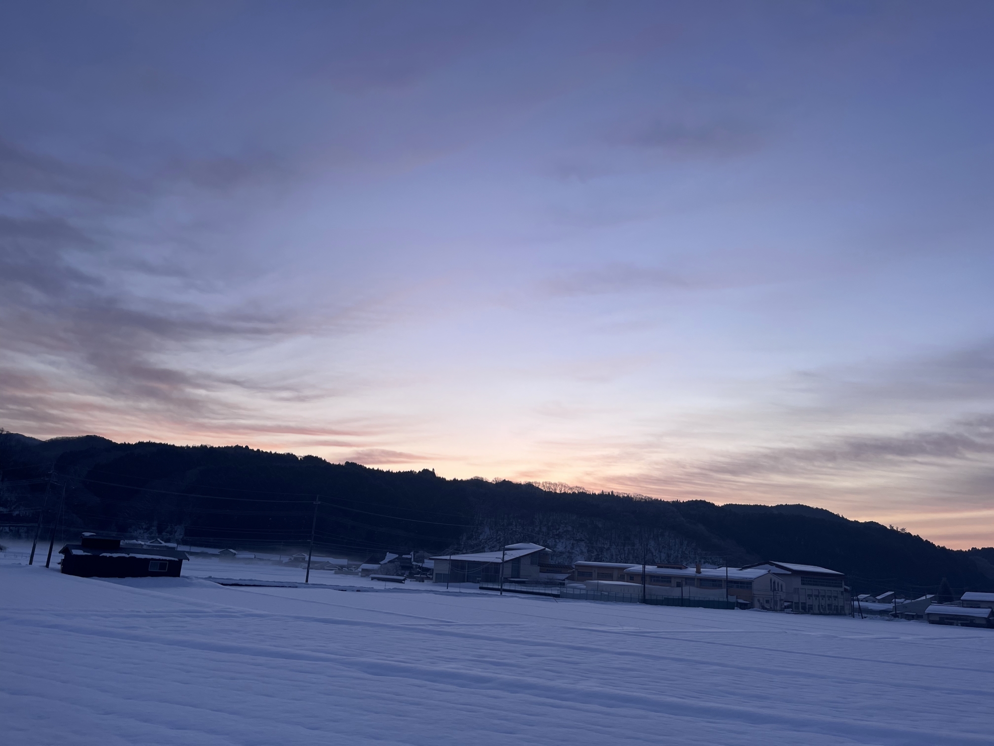 夜明けの頃には雲も……そして、前の日の足跡かな?