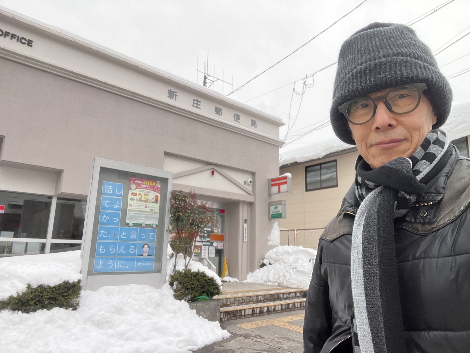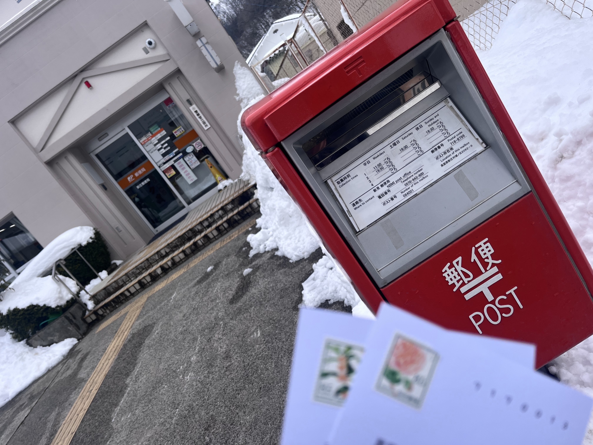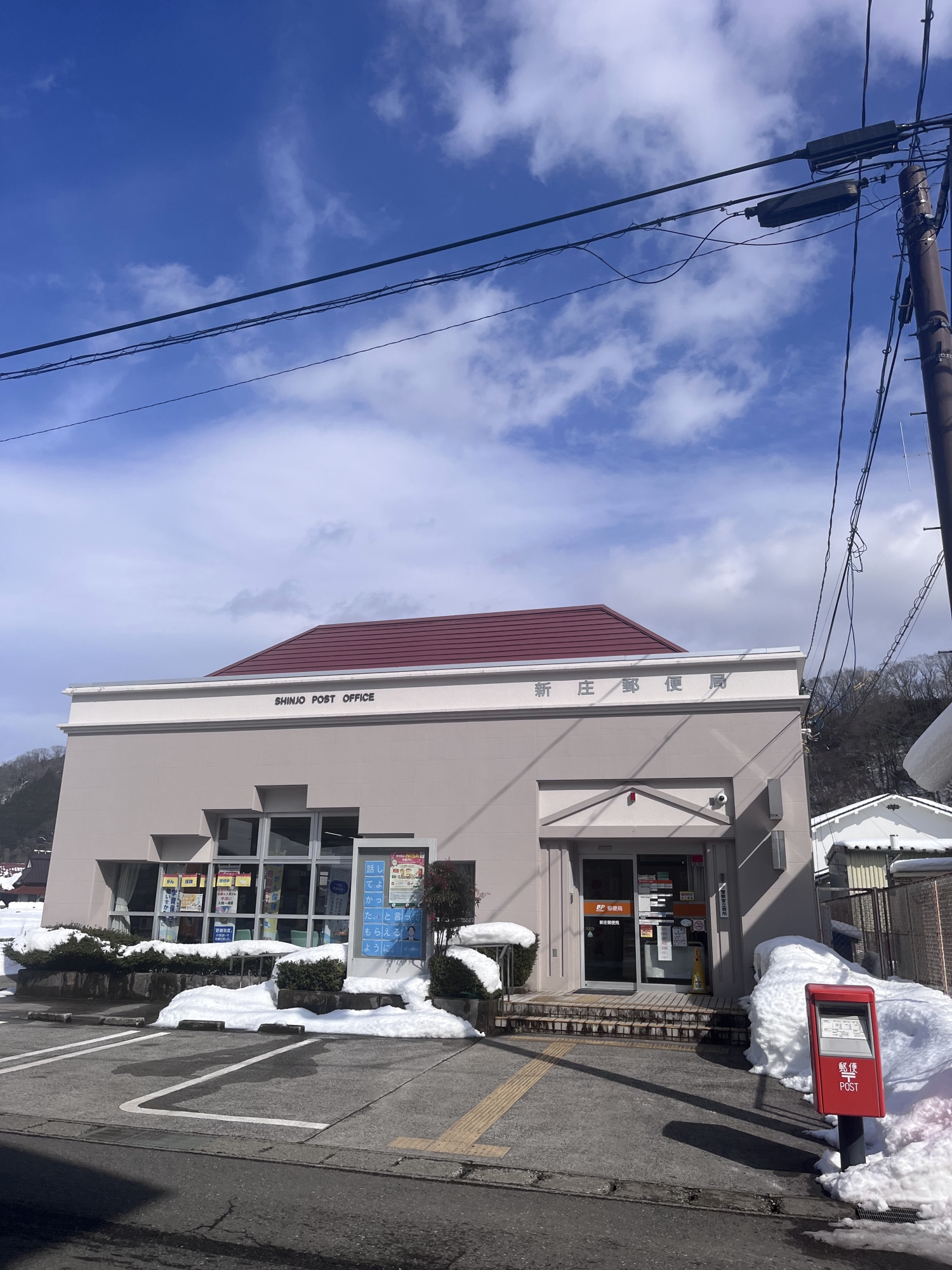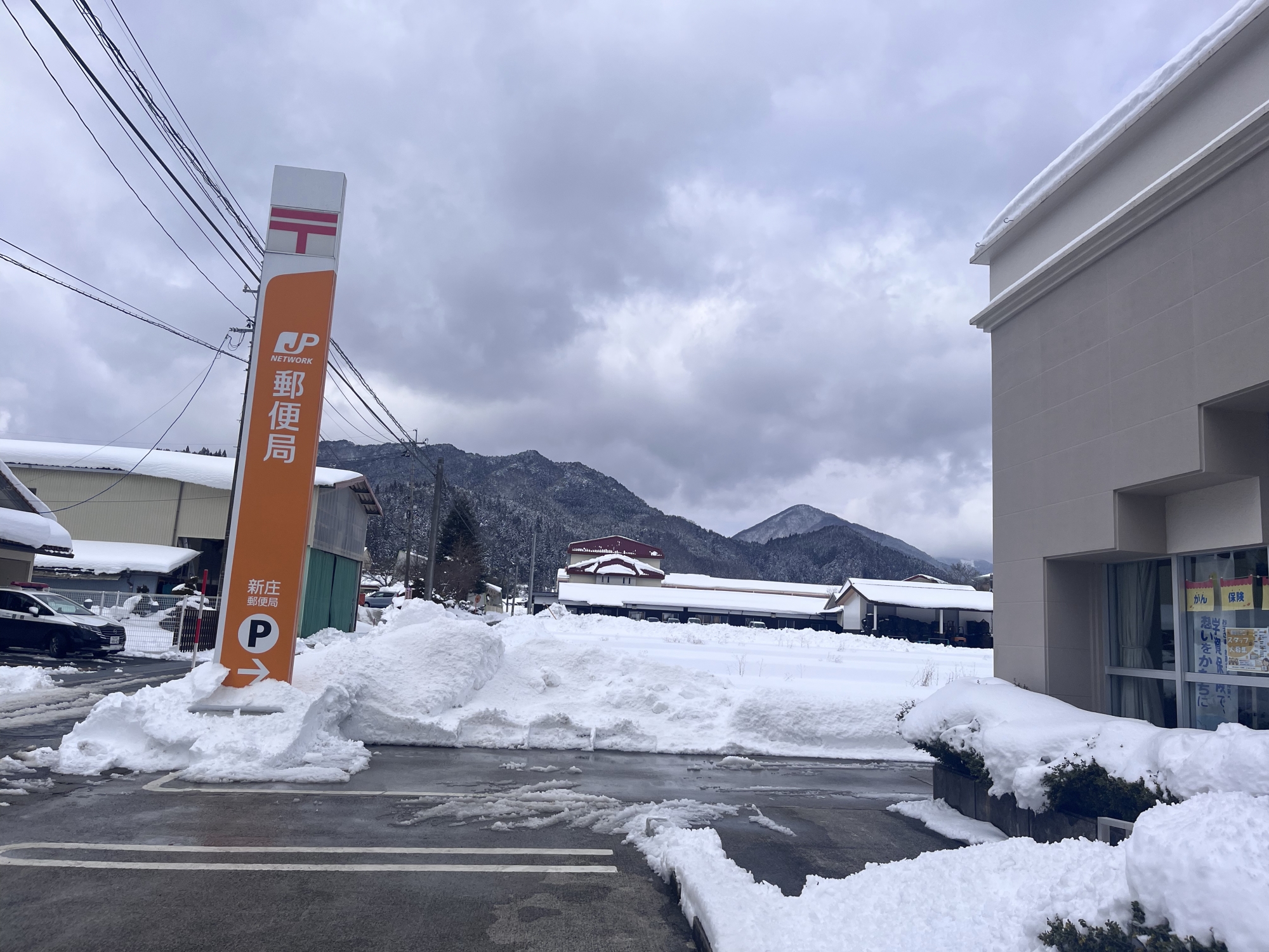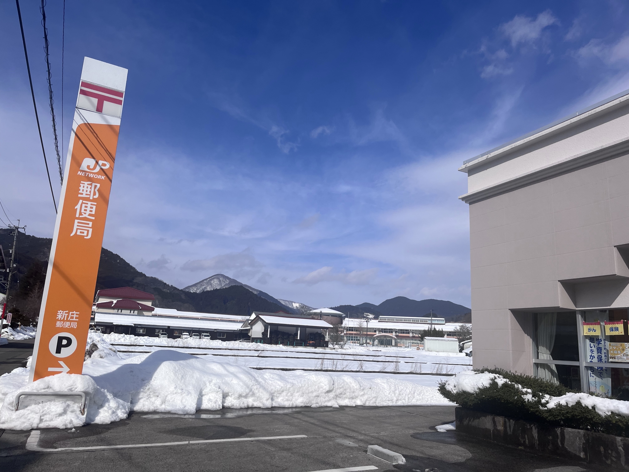 さて、昼は役場の前を抜けて……郵便局へ、