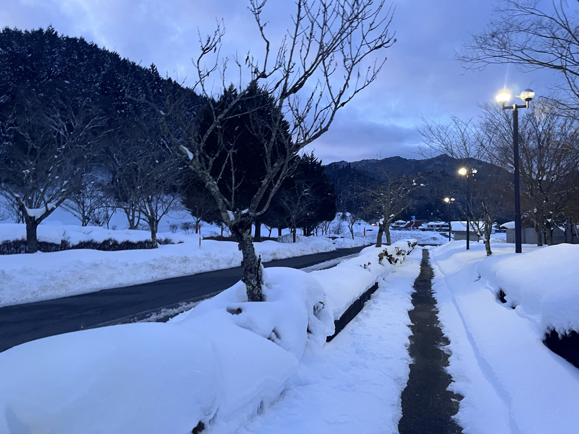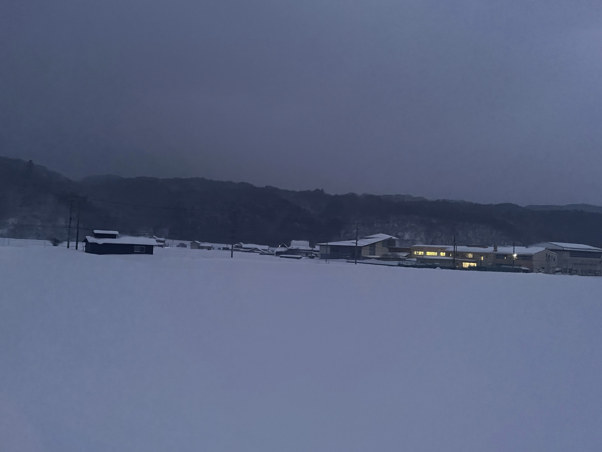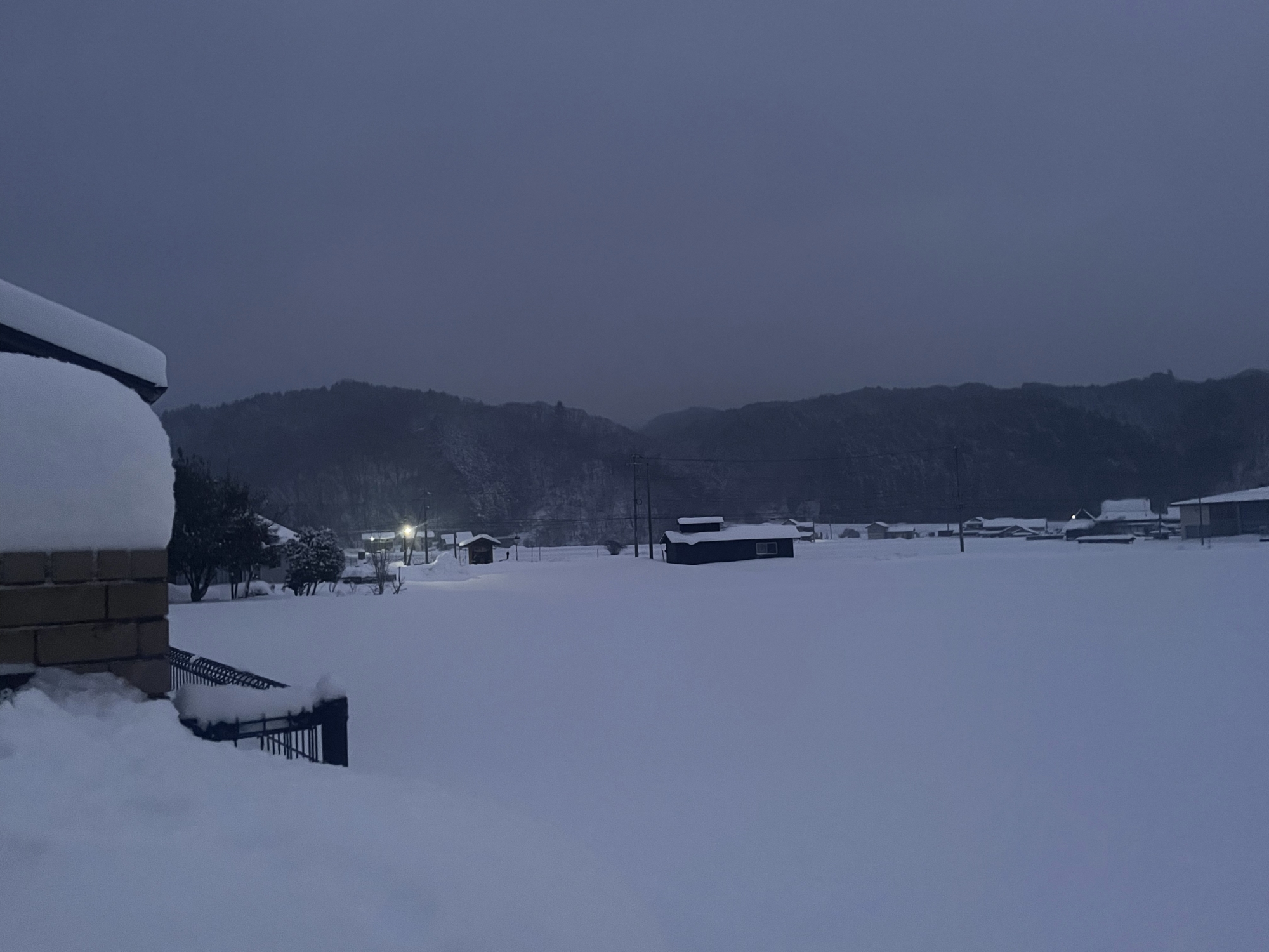 朝4:19には村内放送で、大雪警報発令のアナウンス.