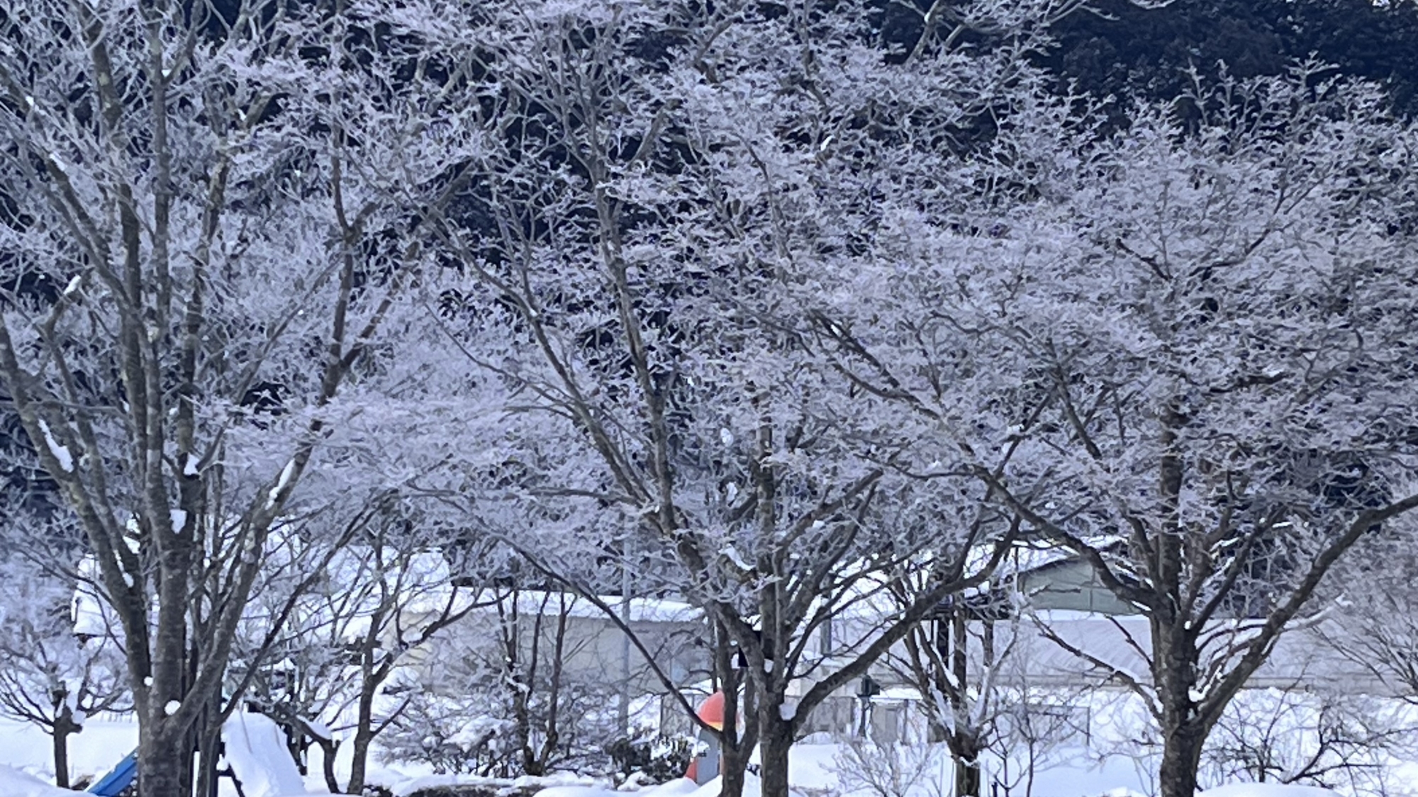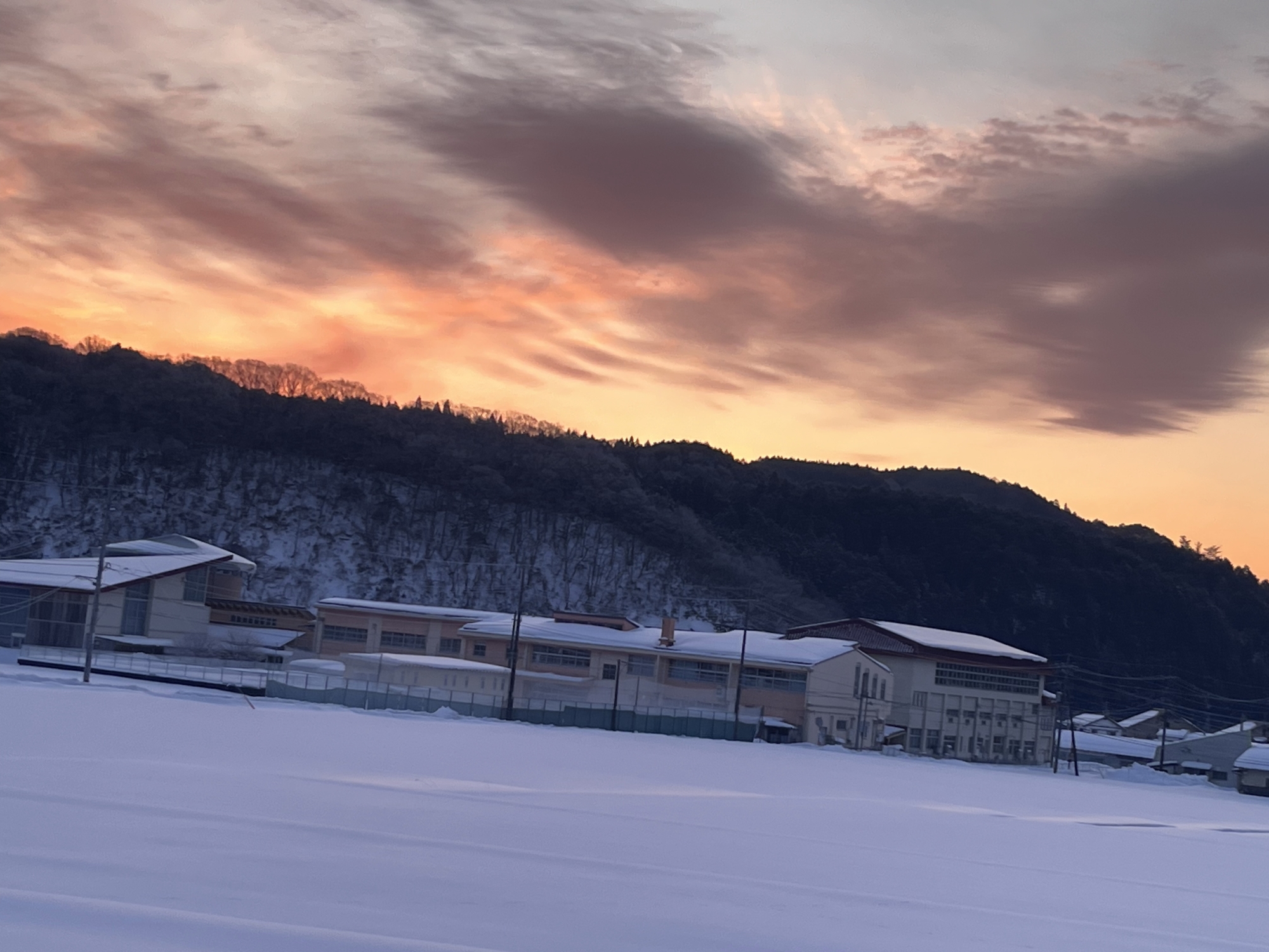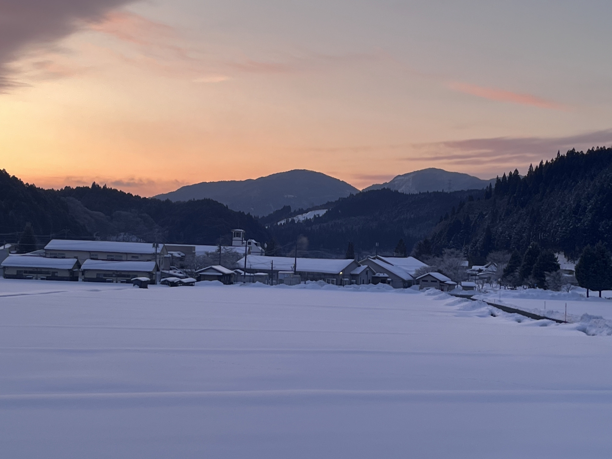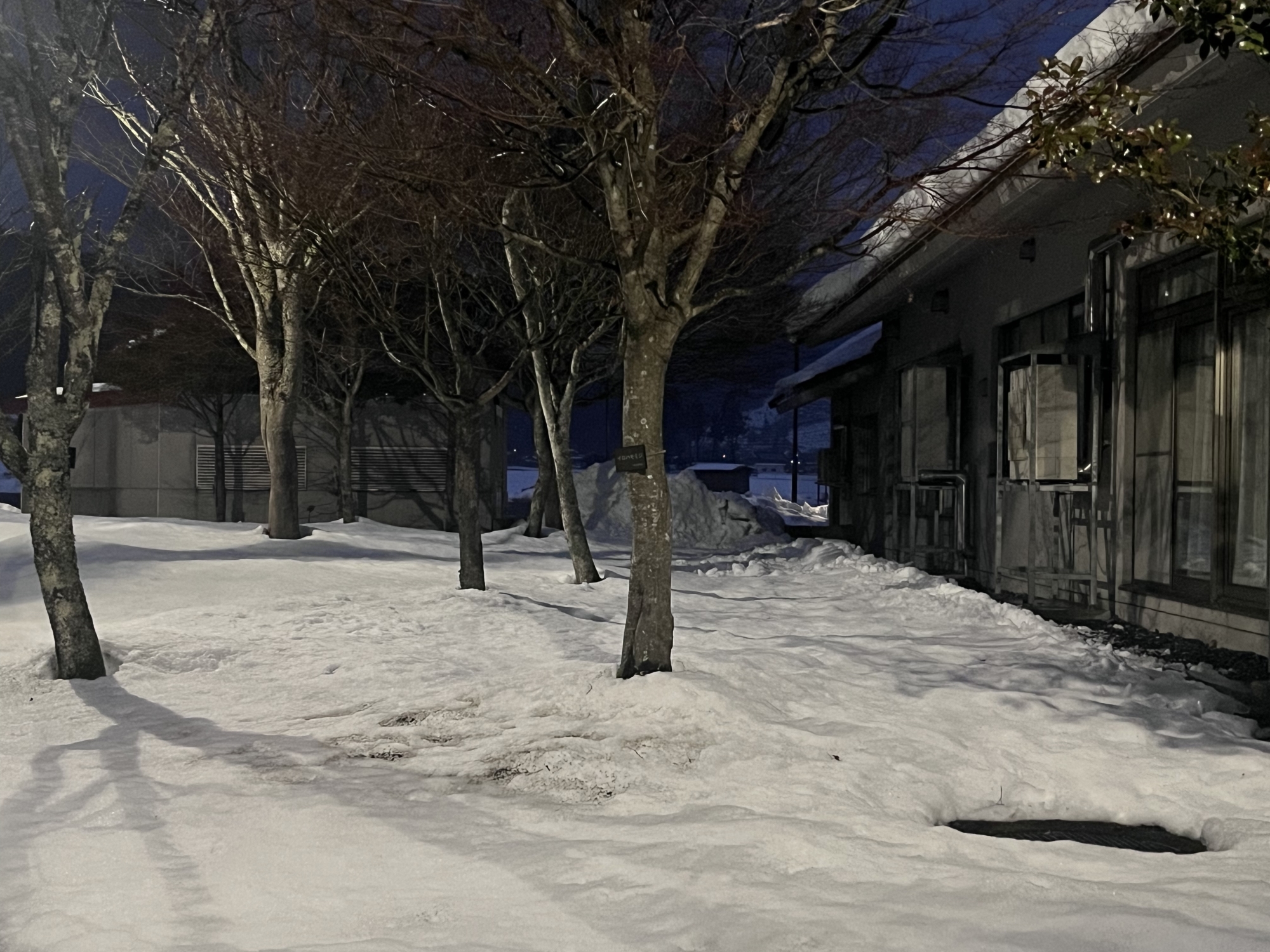 朝4:19には村内放送で、大雪警報発令のアナウンス.