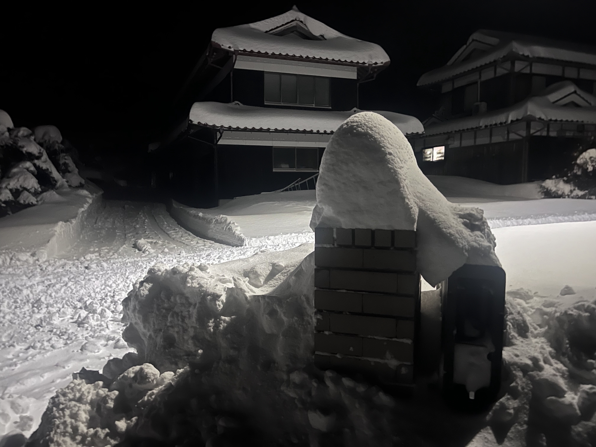 夕方の雪掻きではお向かいのIさんが、雪掻き機(吹き飛ばすやつ)で、門柱の外を対応してくださいました.