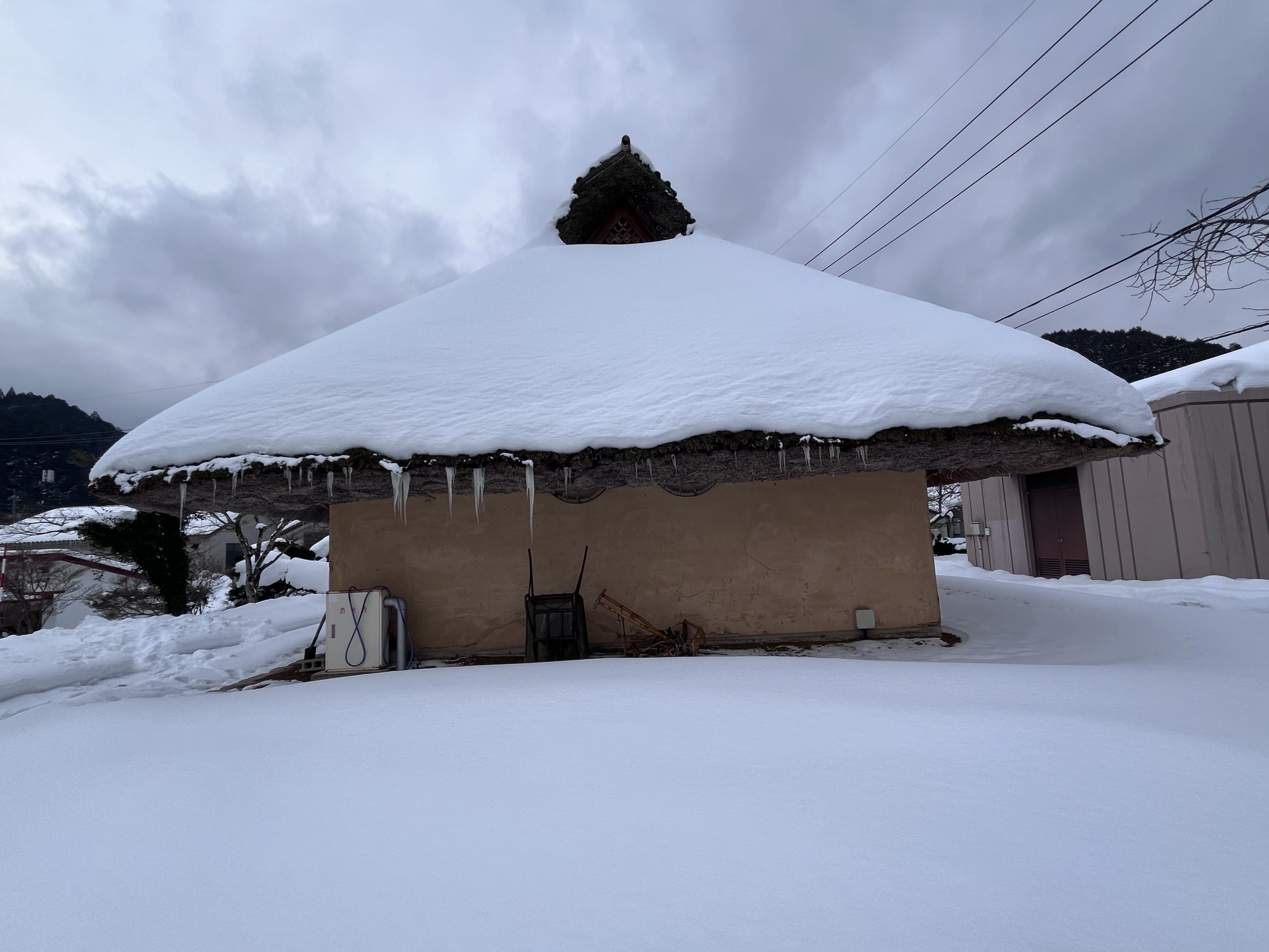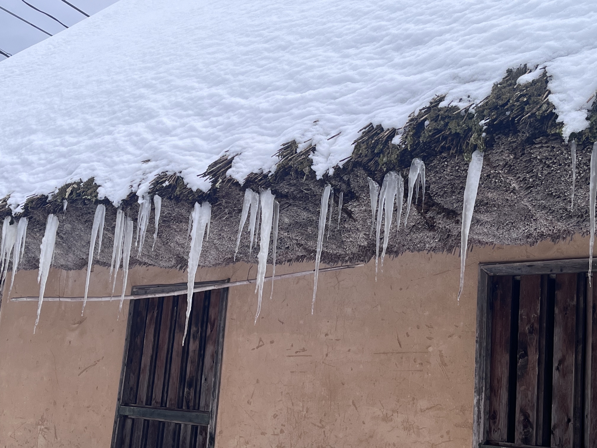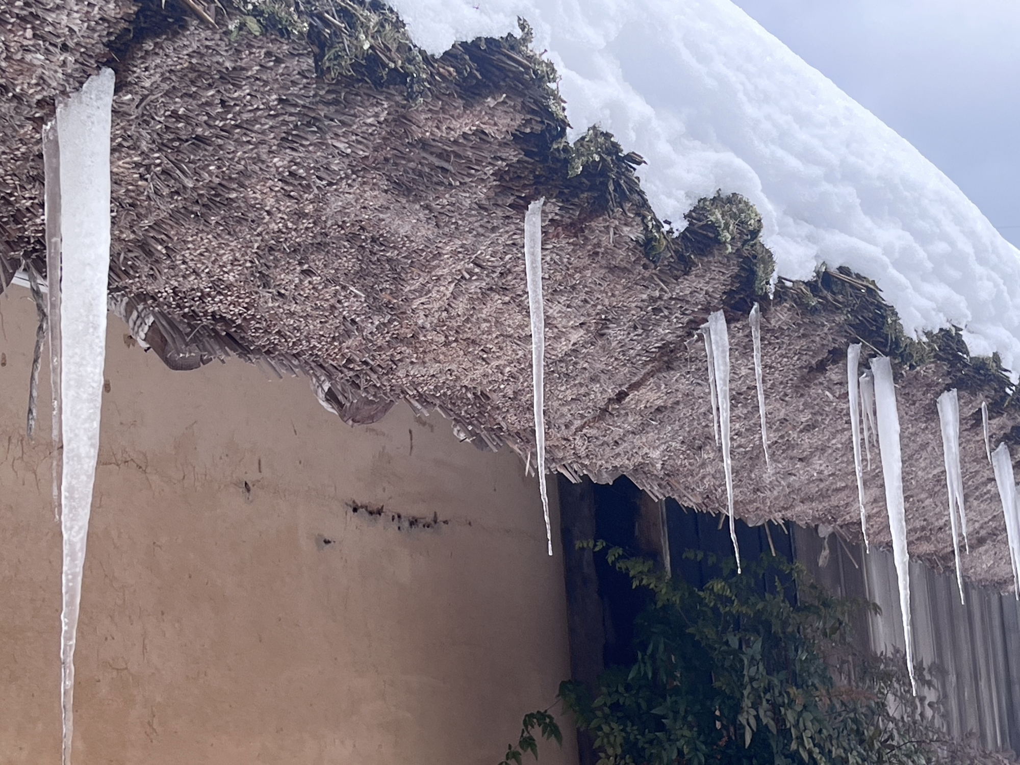 茅葺だと氷柱の感じが異なりますね.