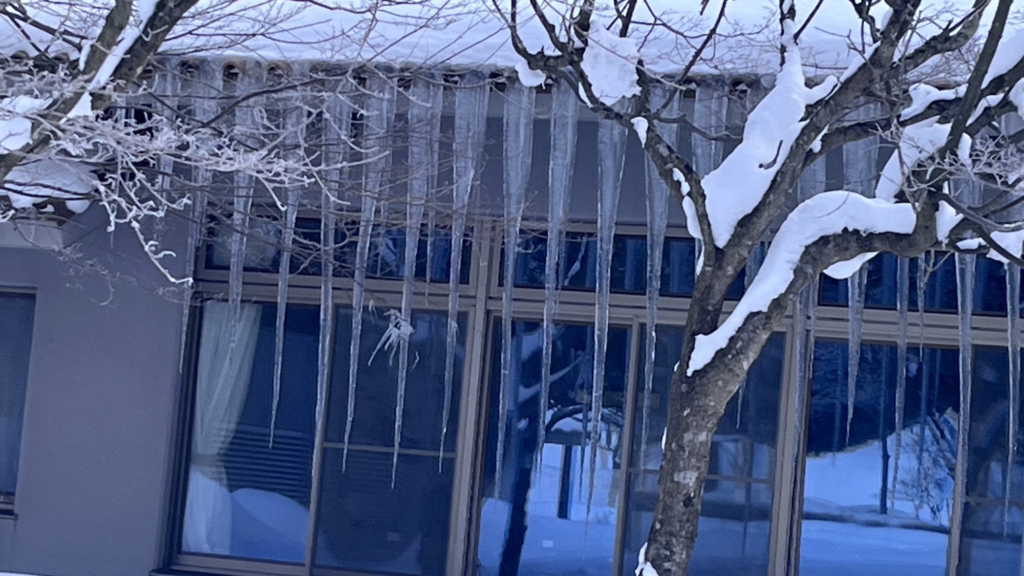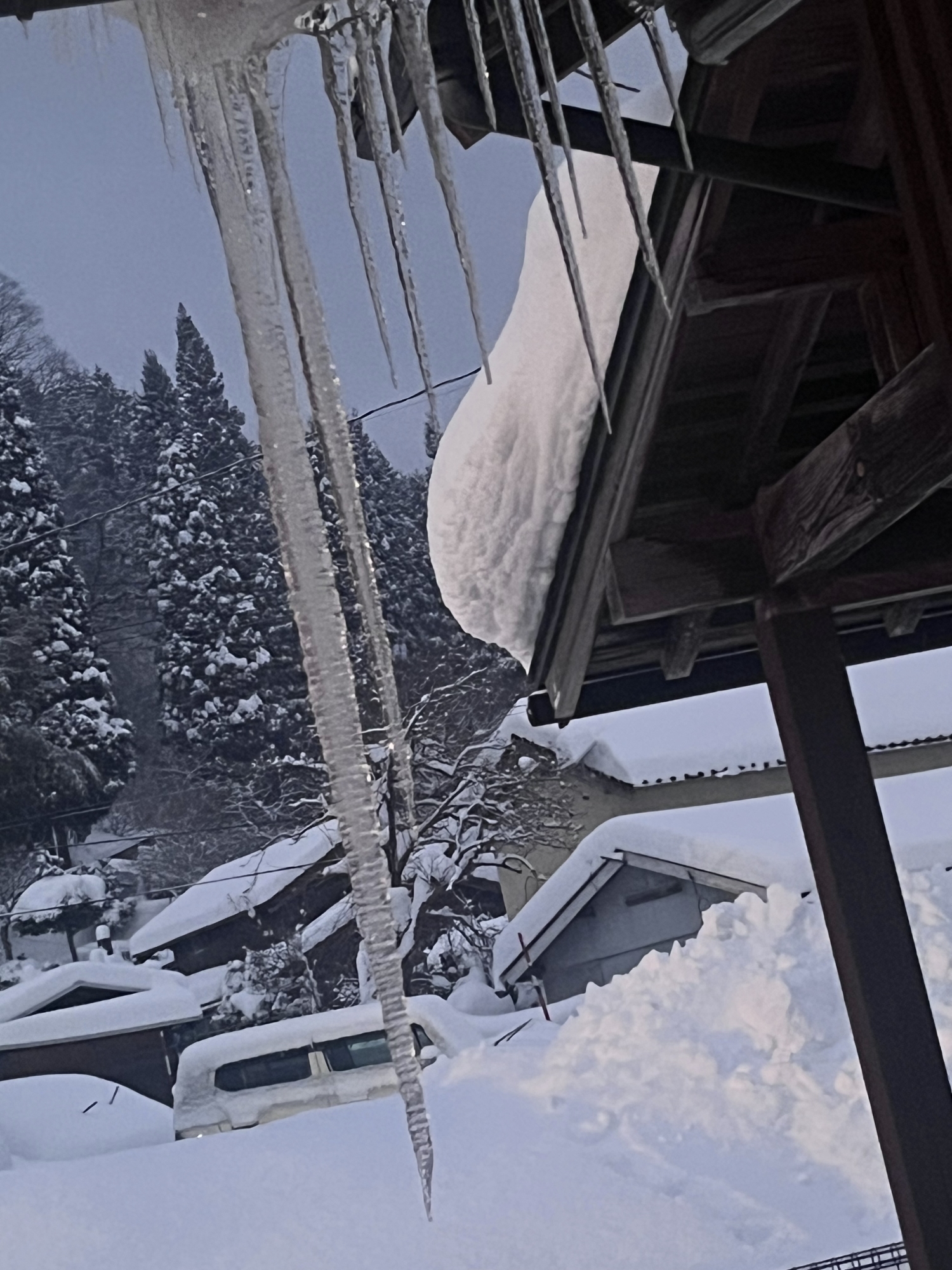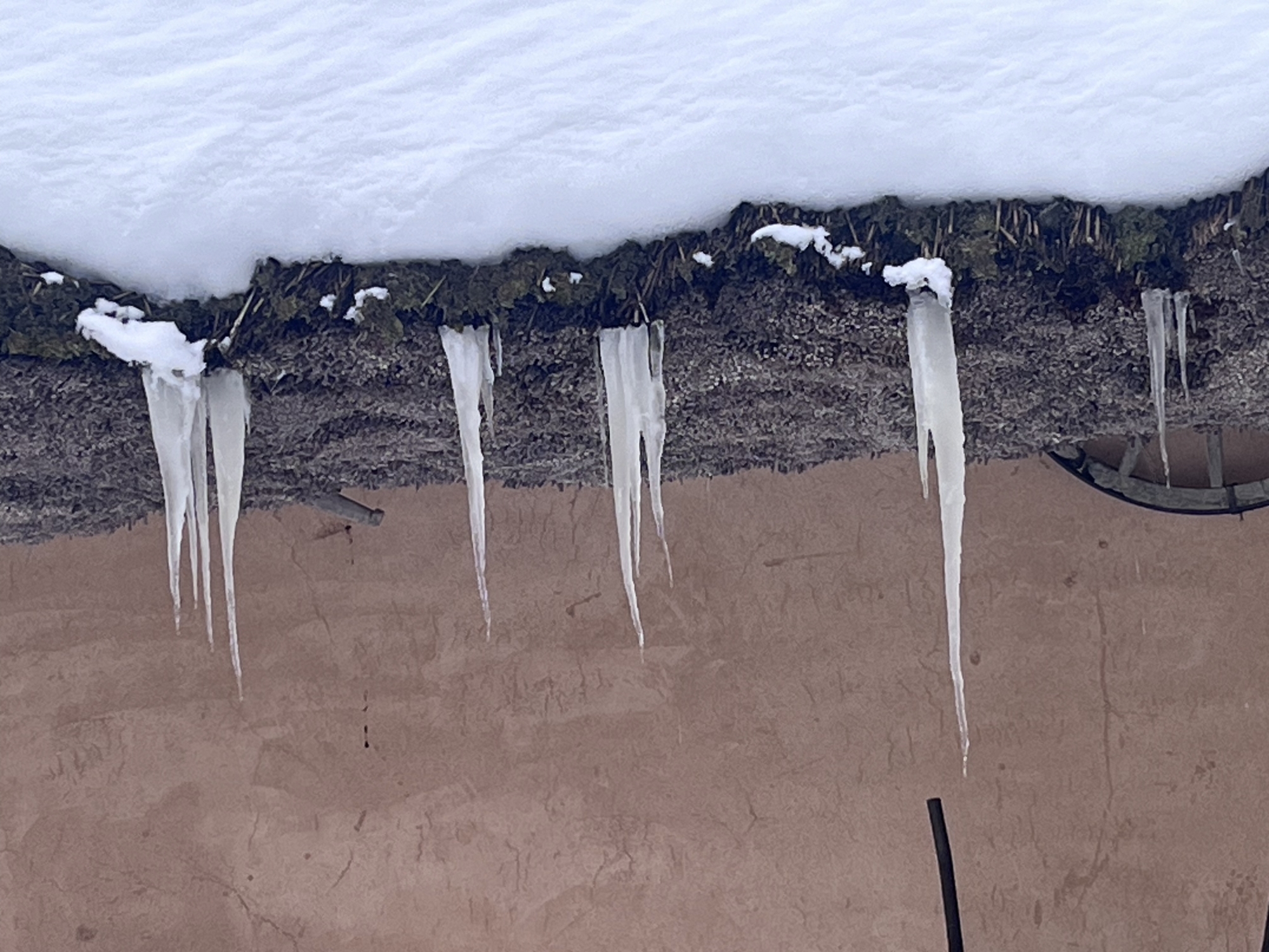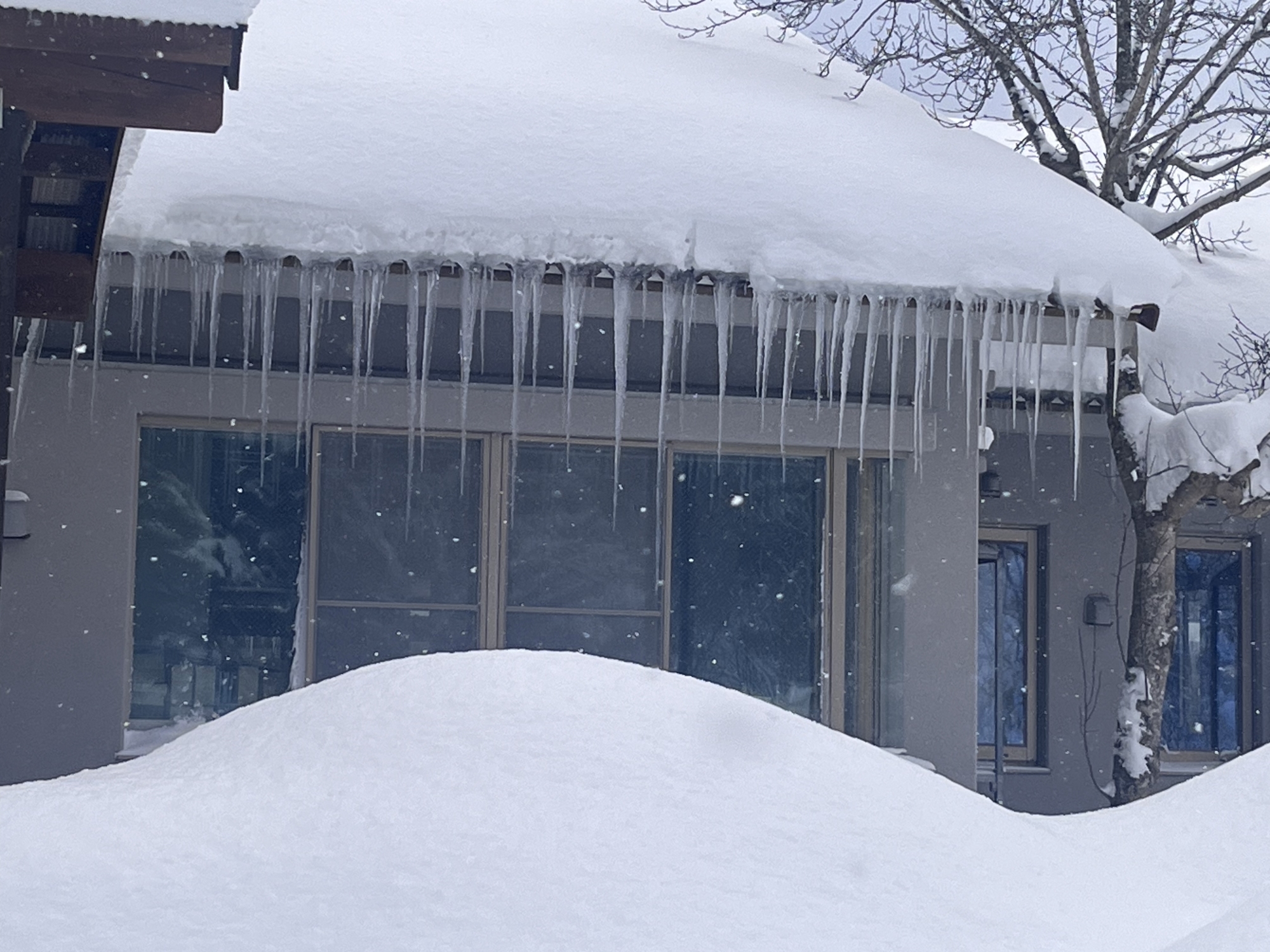 茅葺だと氷柱の感じが異なりますね.