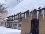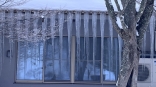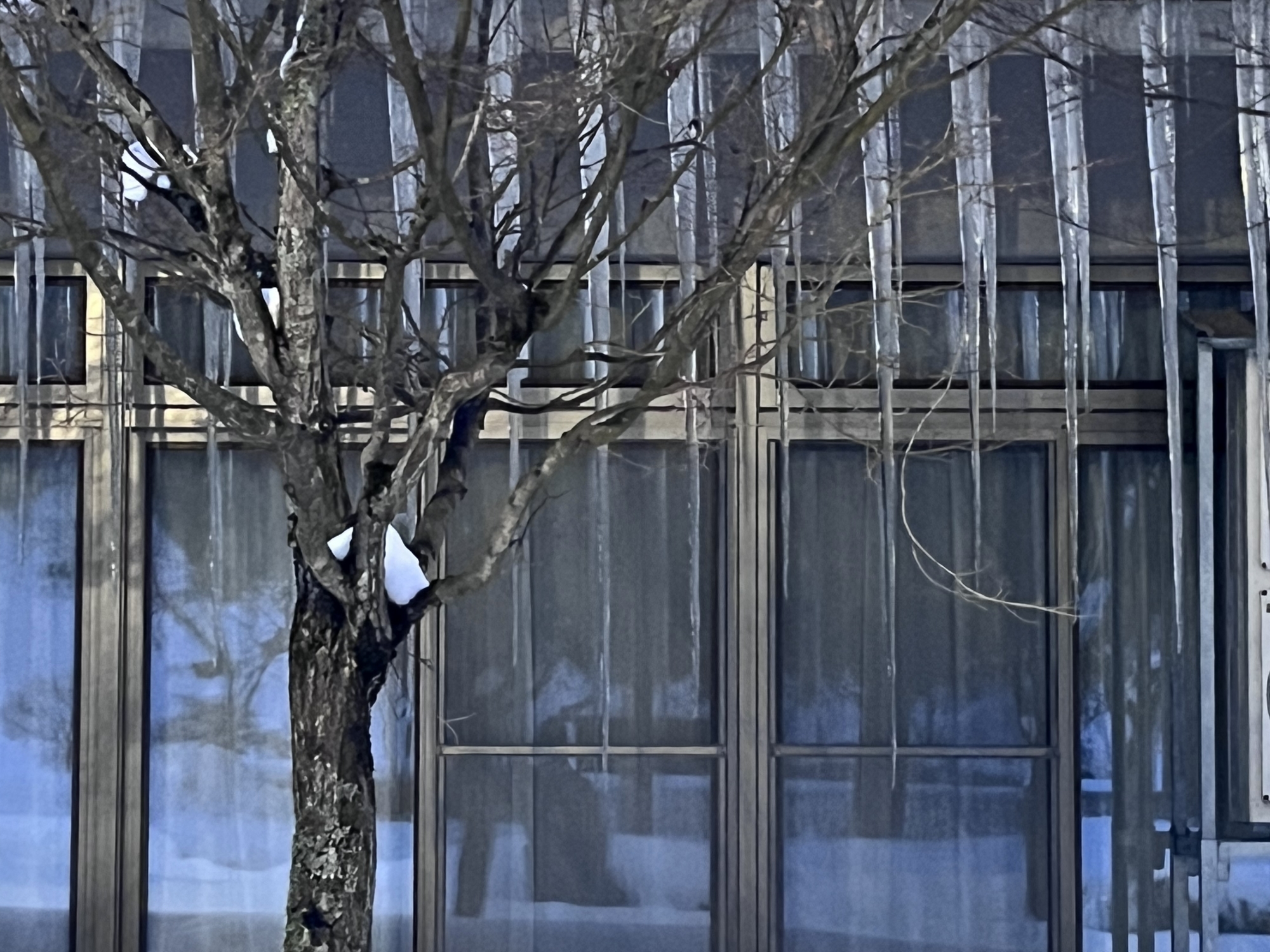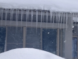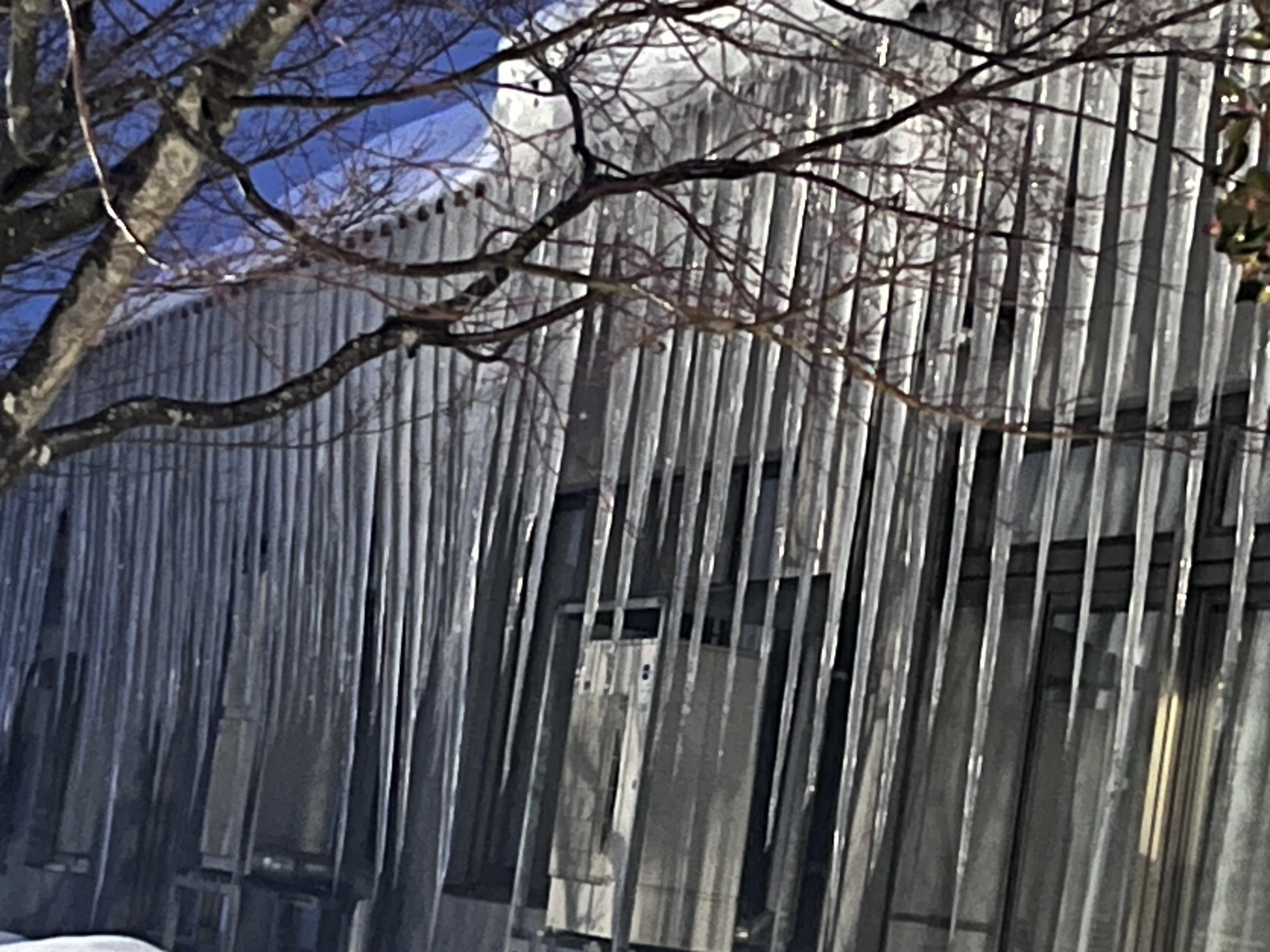 昼休みに……郵便局へ……診療所の建物のつらら.