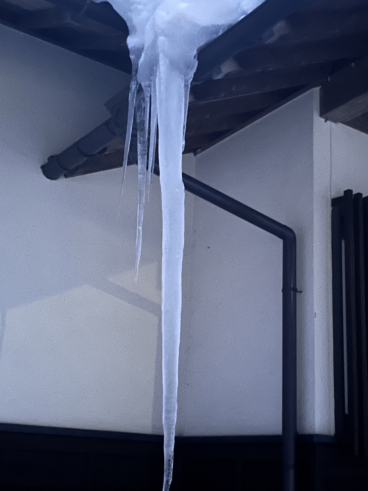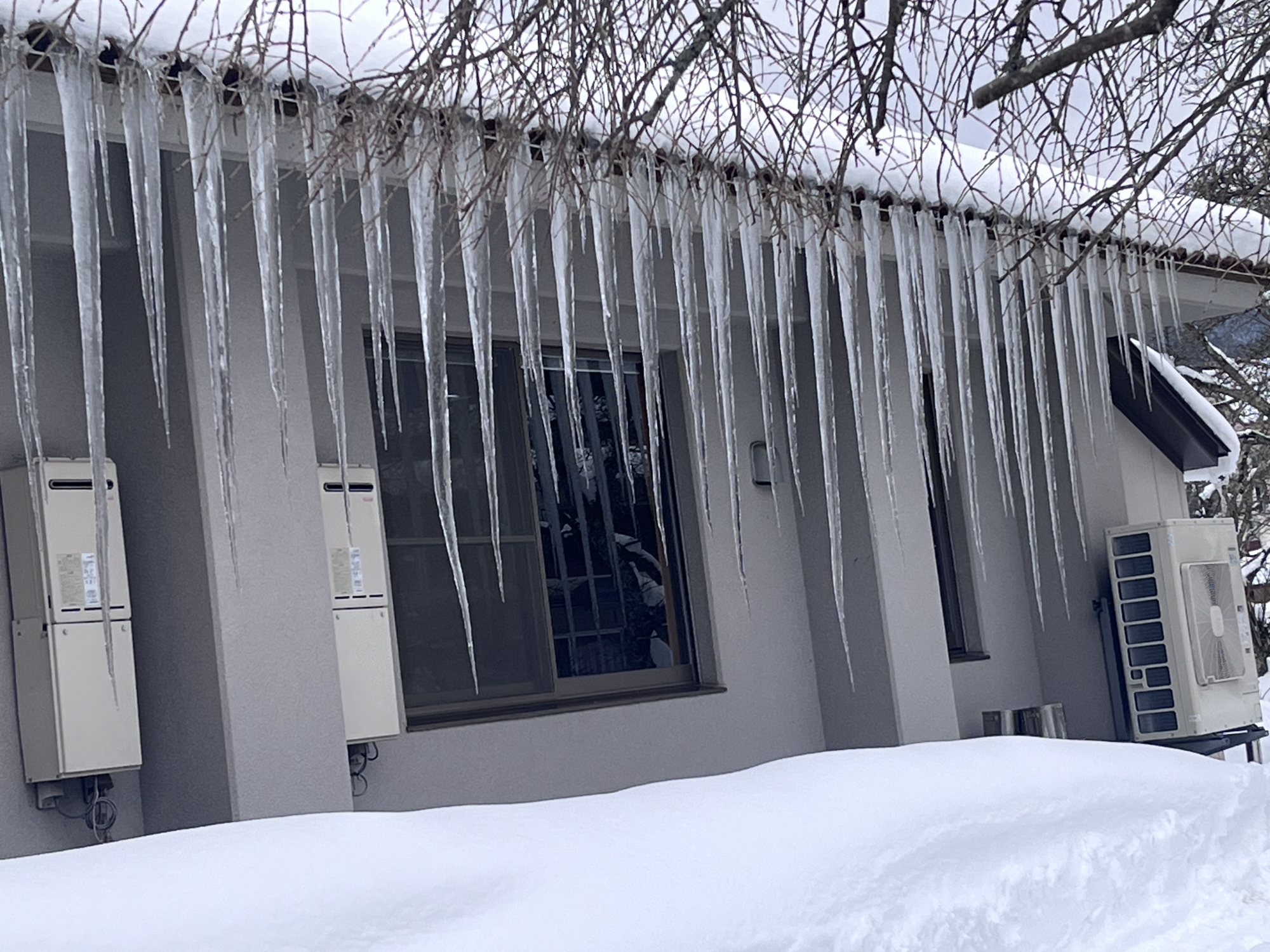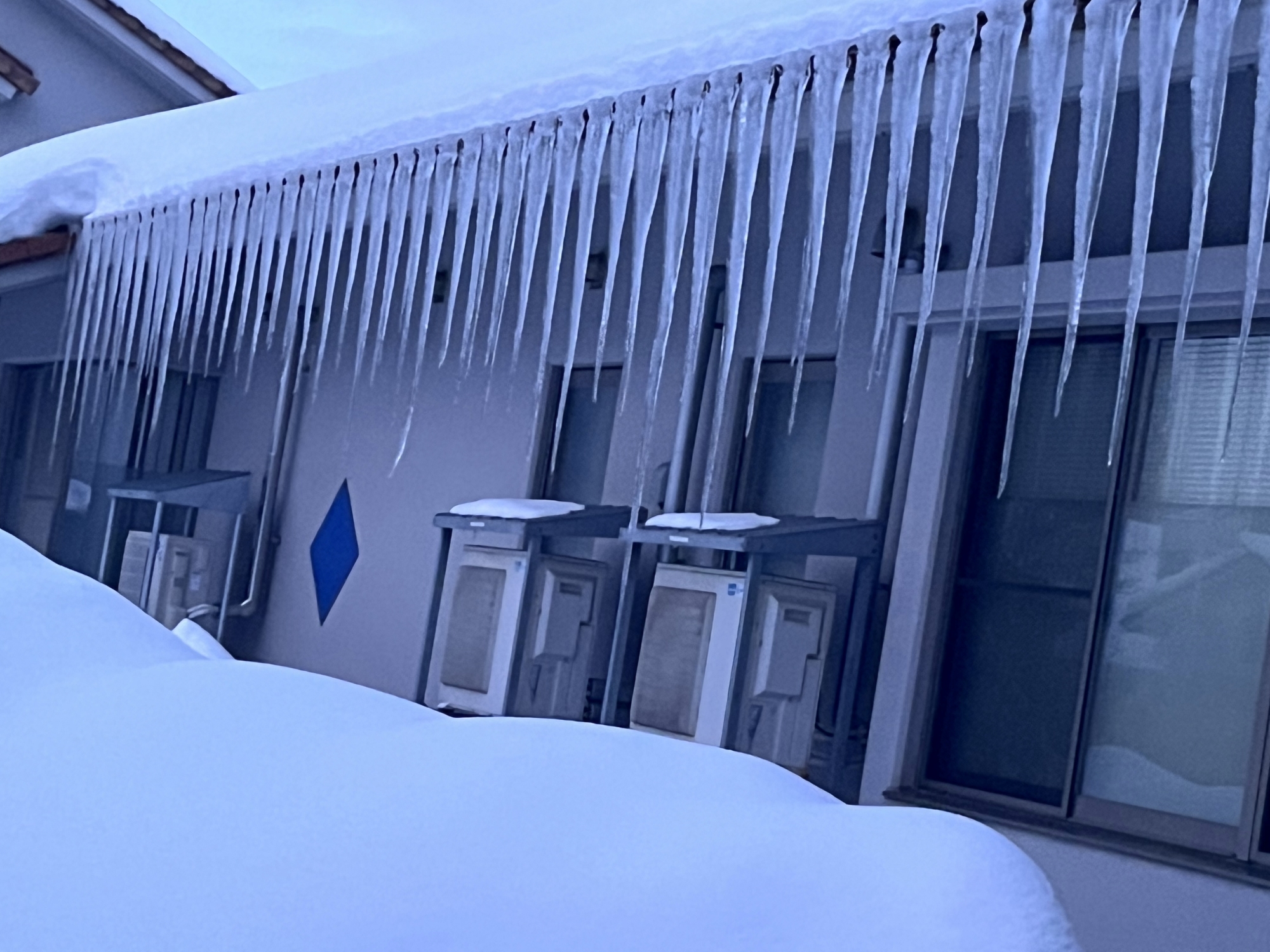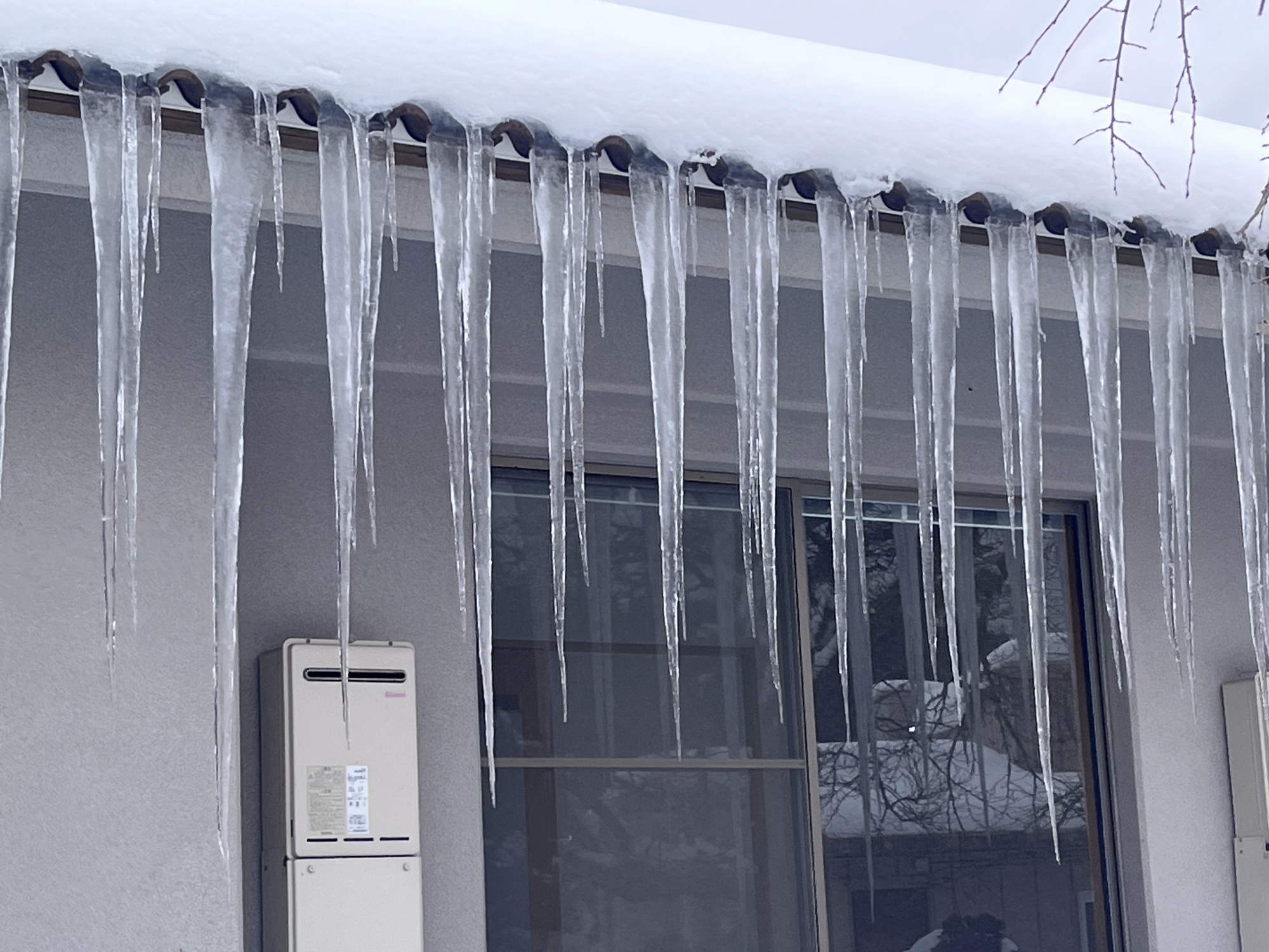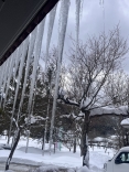さて、官舎に戻って……玄関先の氷柱の伸び方がすごい.
