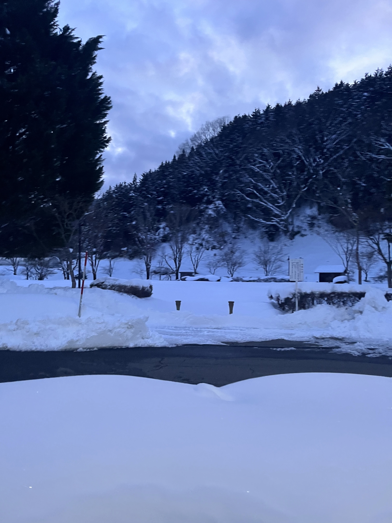 大量ではないけど、雪が往復の間降っていました.