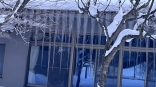 官舎の玄関口の氷柱.