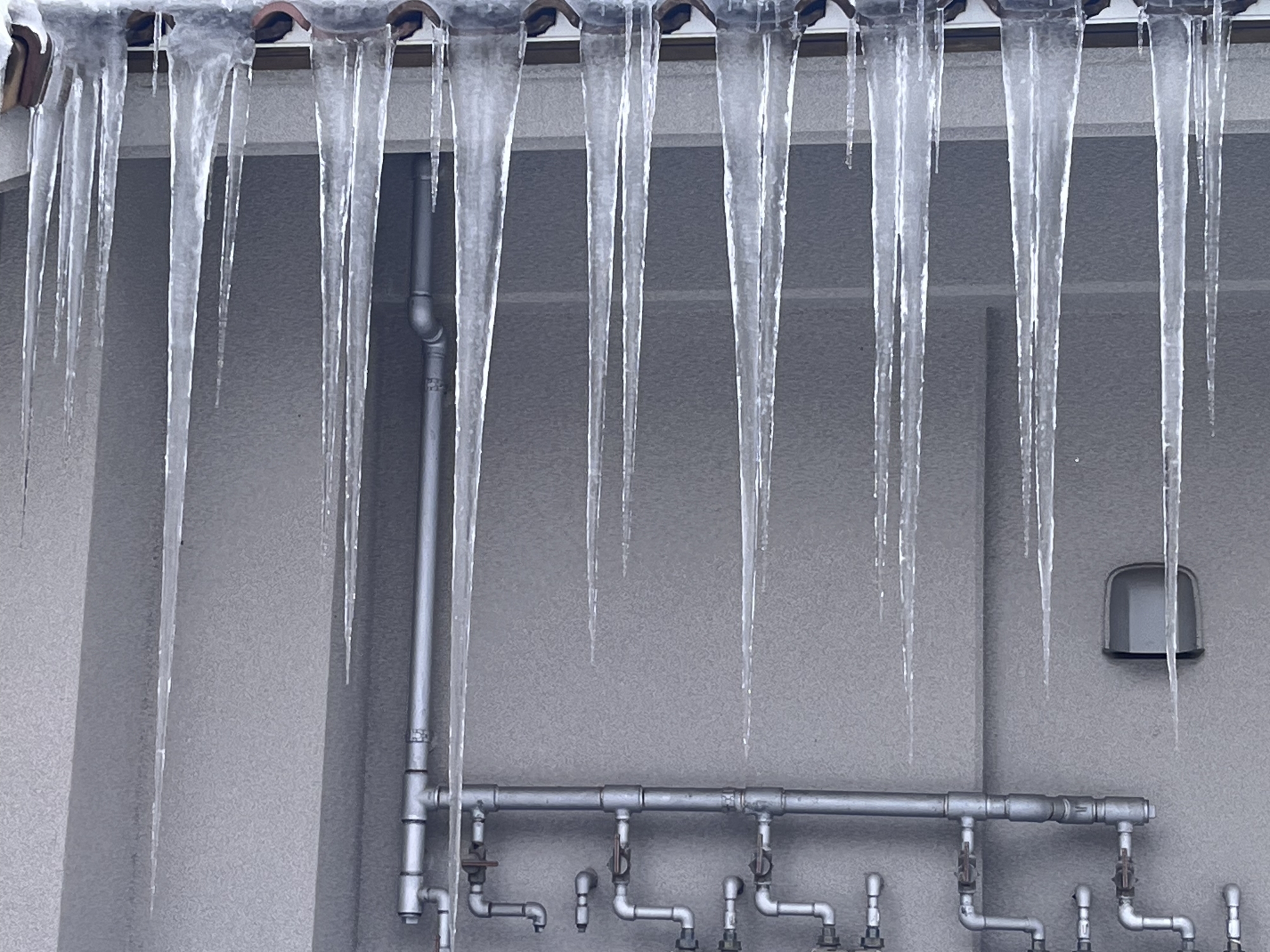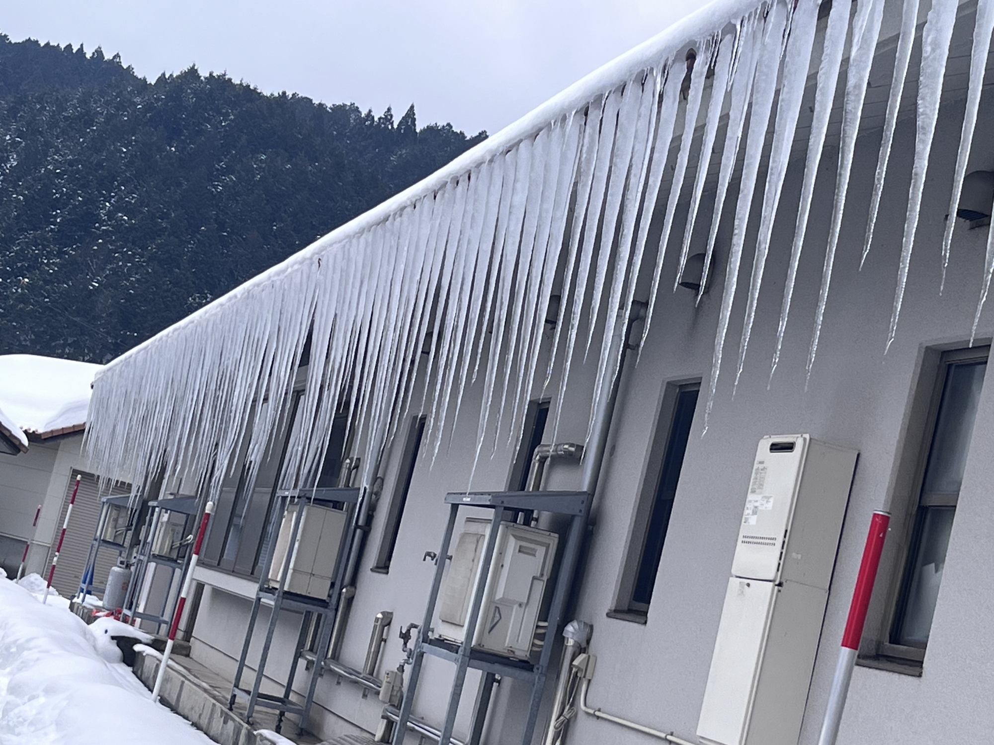 長い建物なので、氷柱もいろいろ、