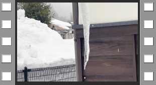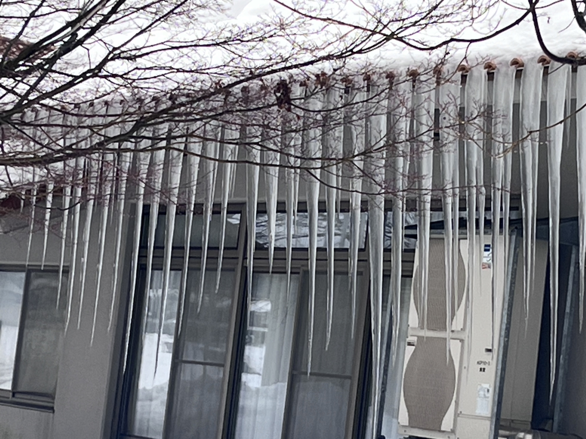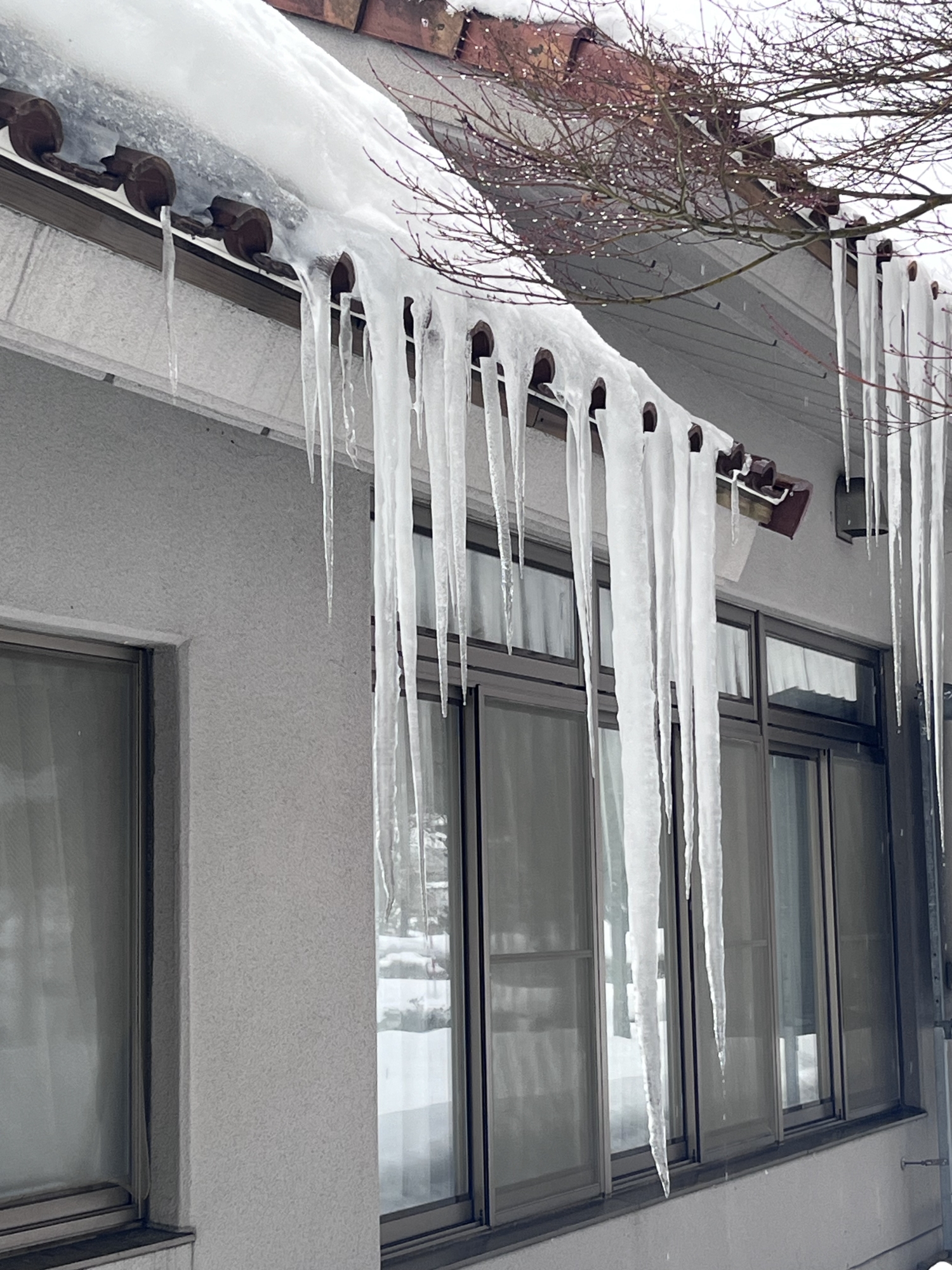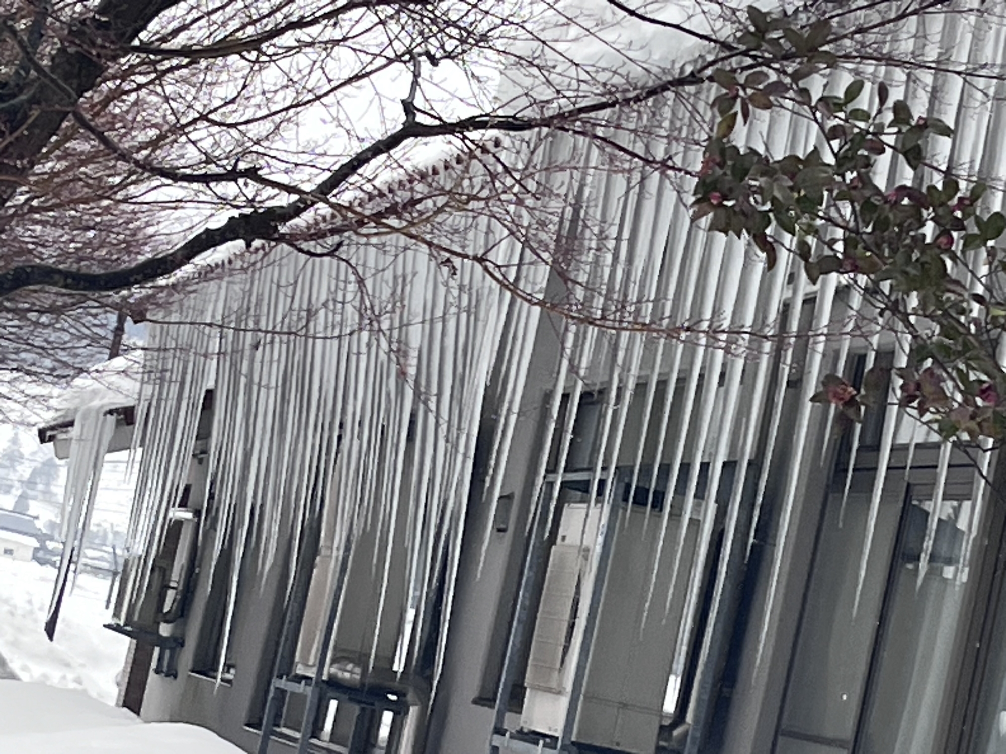 官舎横の氷柱(朝と夕).