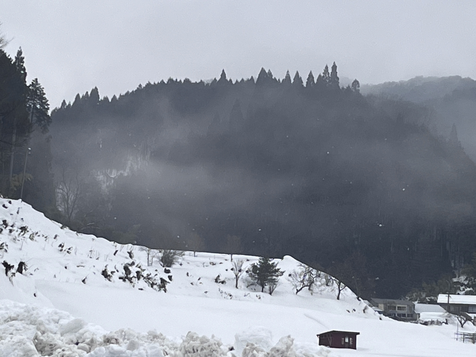 まだ、掻かれた雪の山が…….
