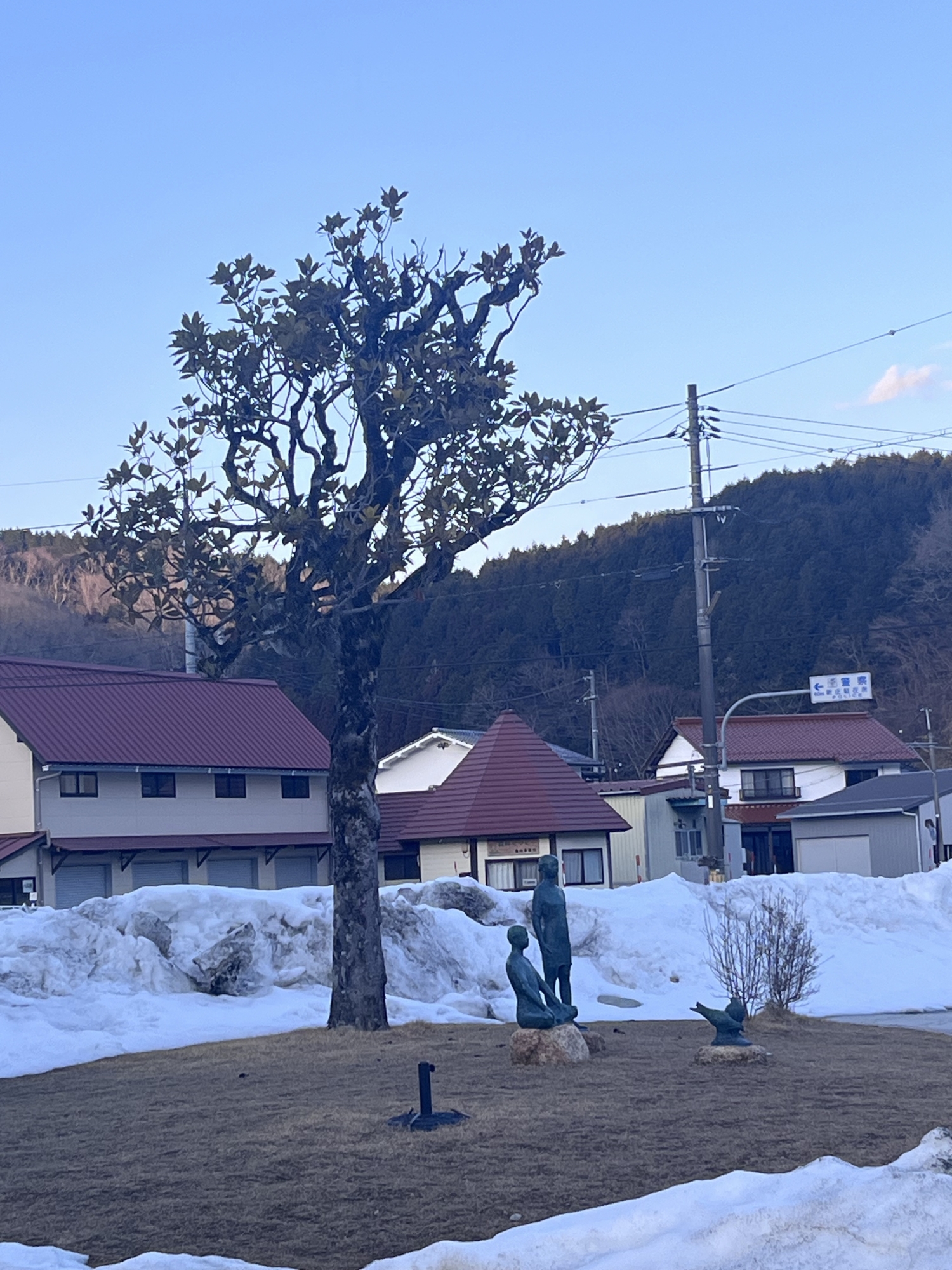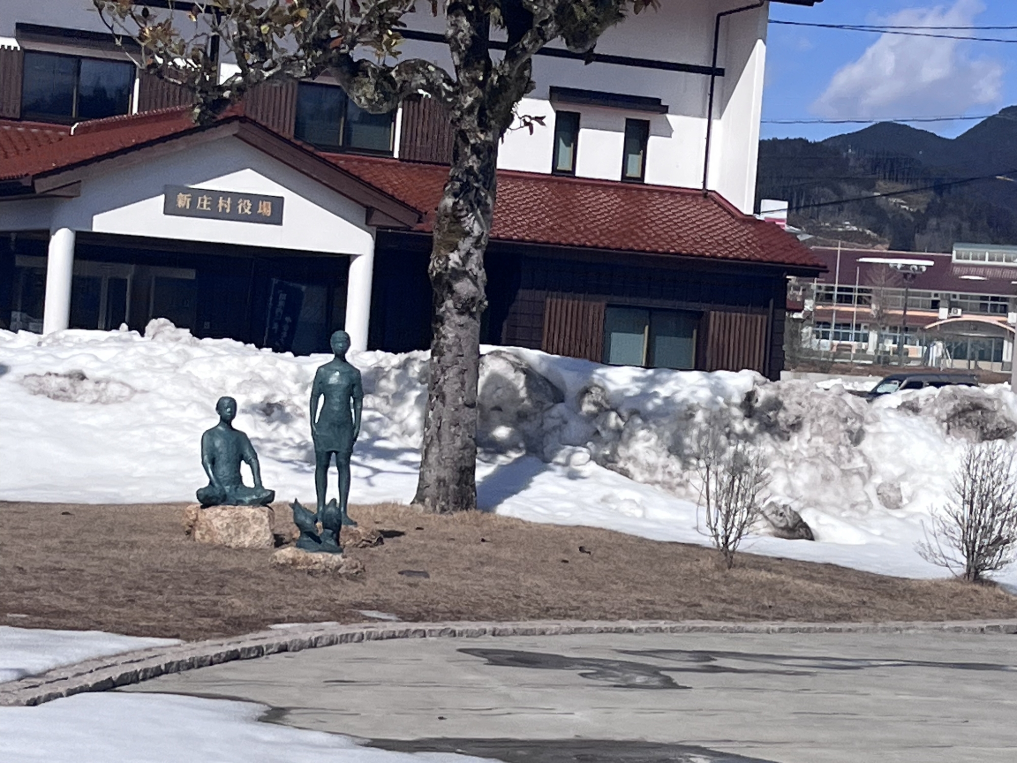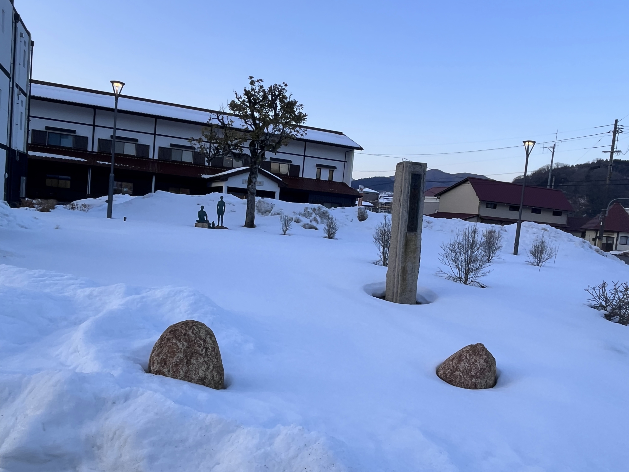 さて、金盛先生の像の所の雪は解けてますね.