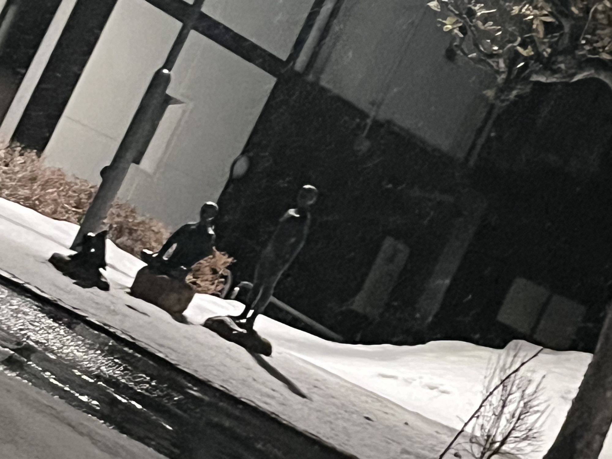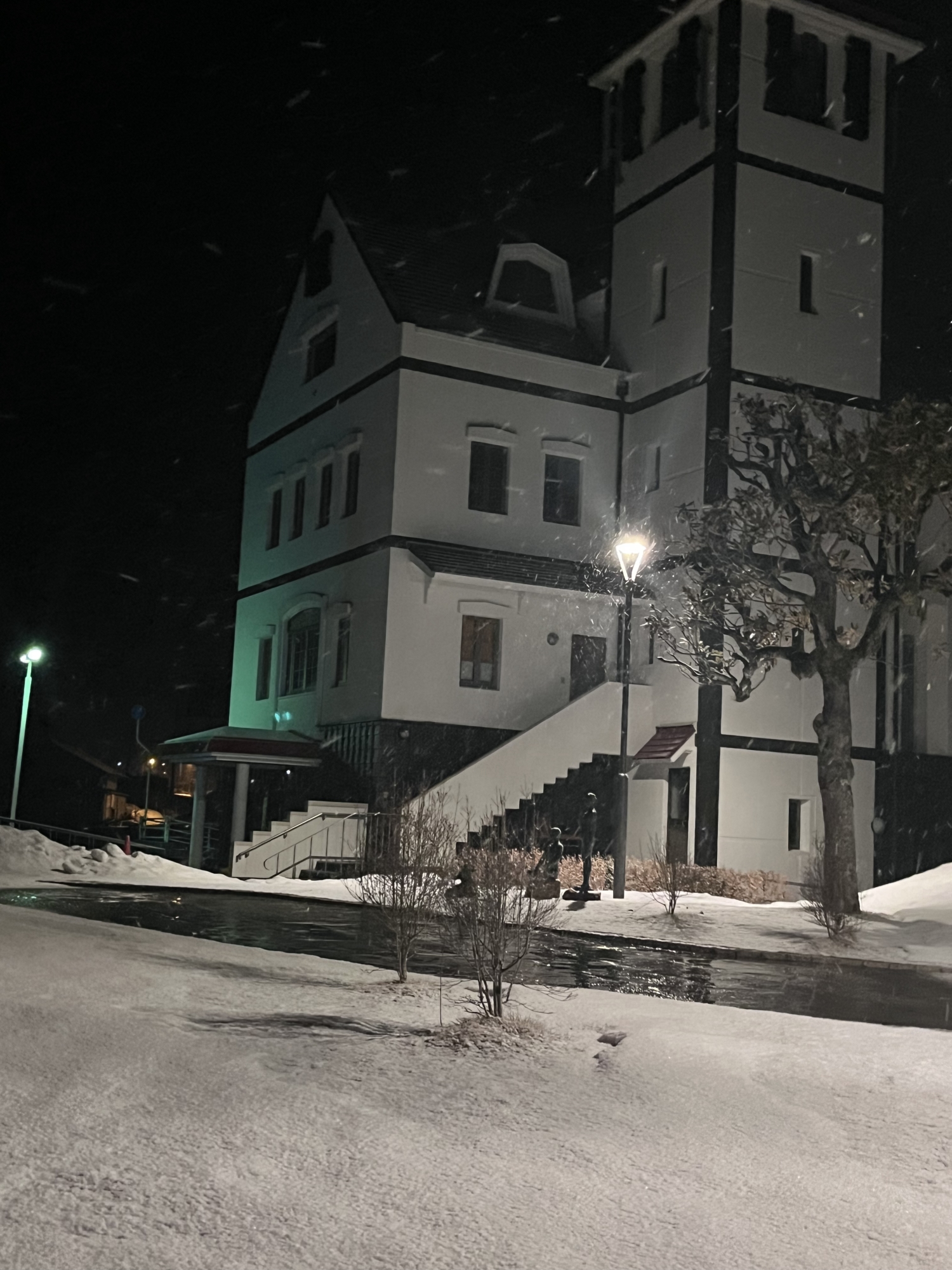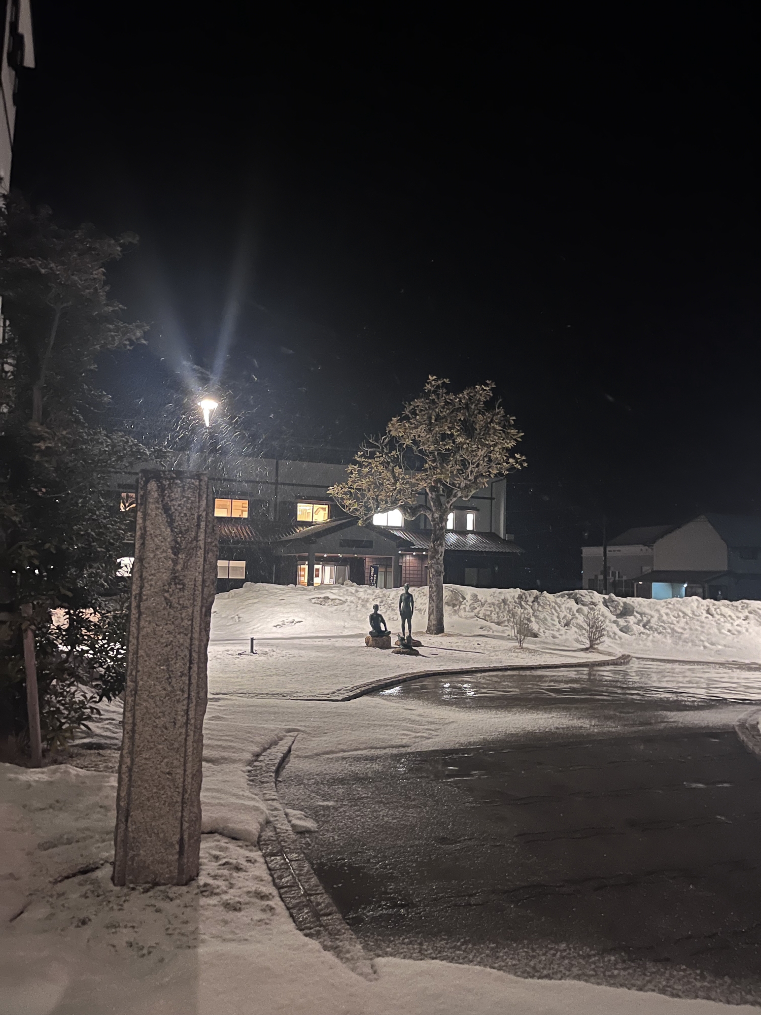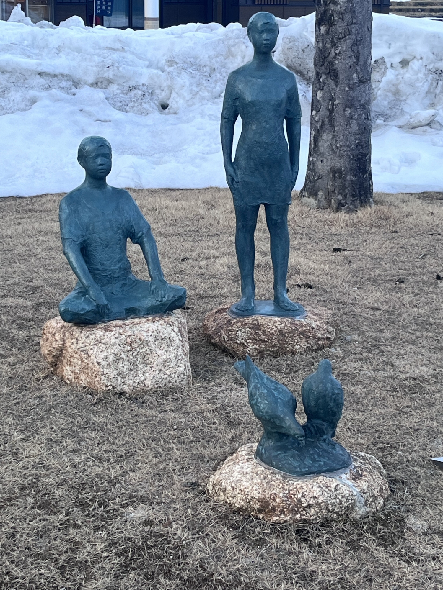 さて、金盛先生の像の所の雪は解けてますね.