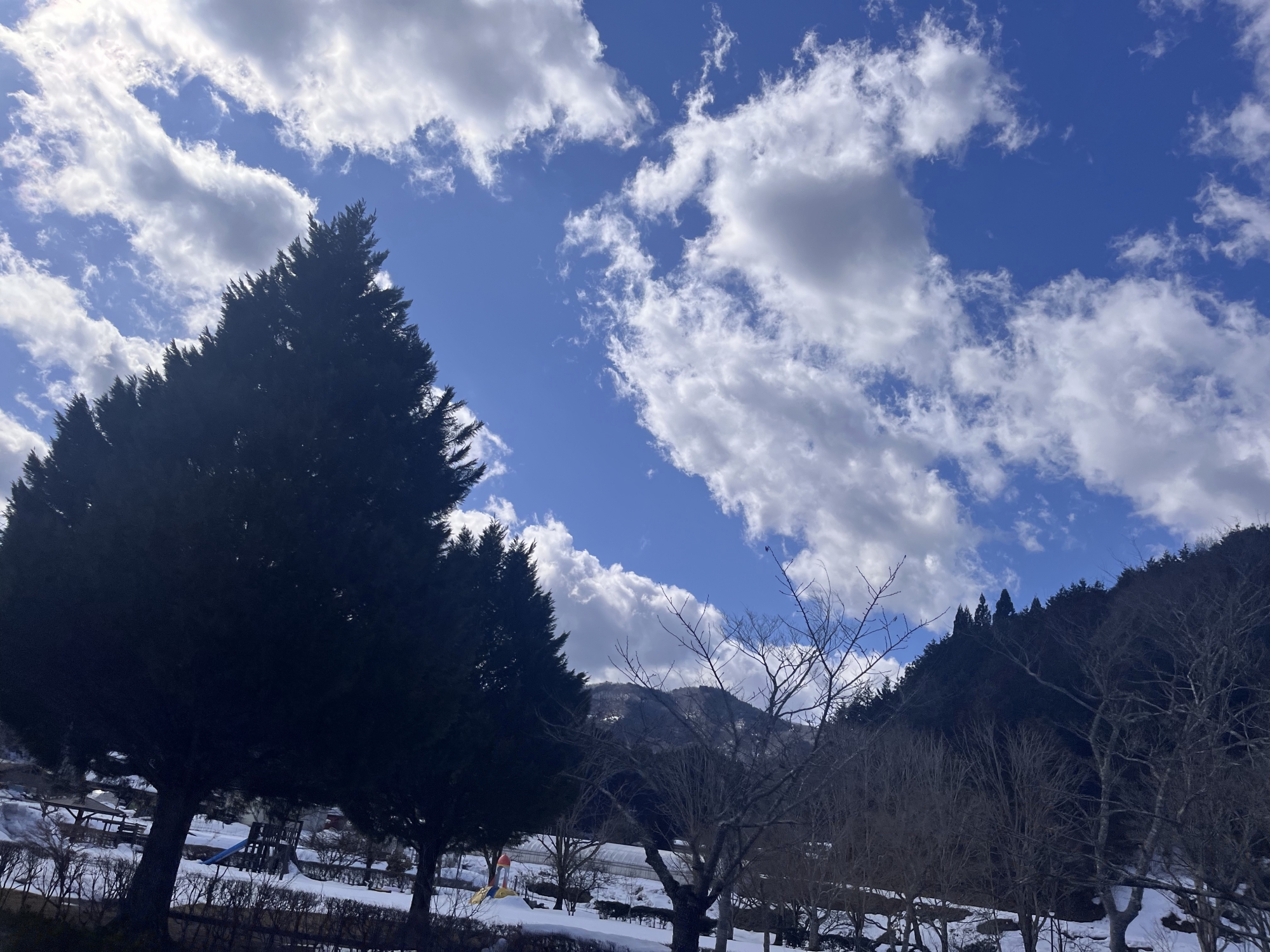 おお、昼はきれいな青空.