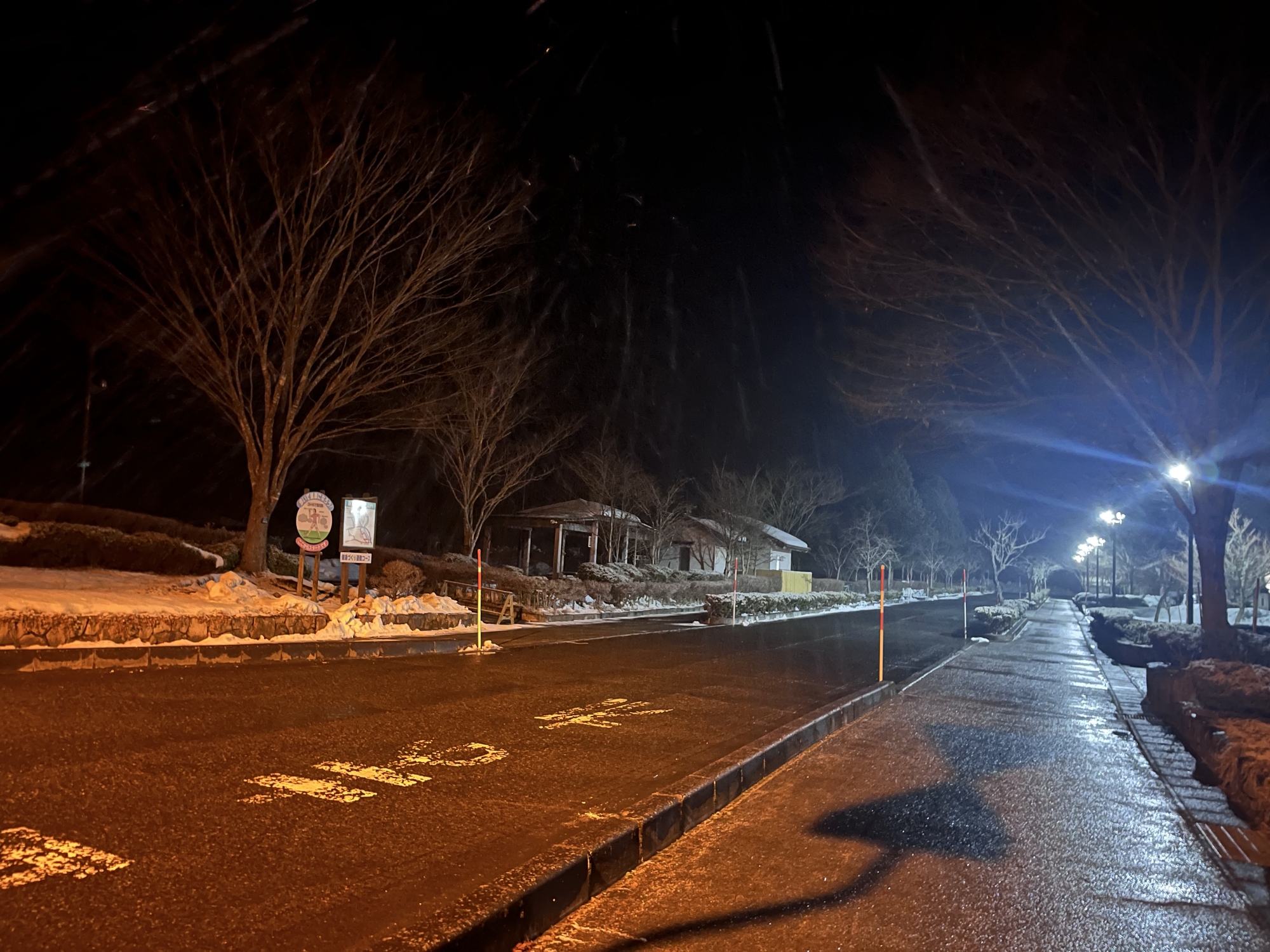 灯りに照らされるとよく降っている様に見えます.