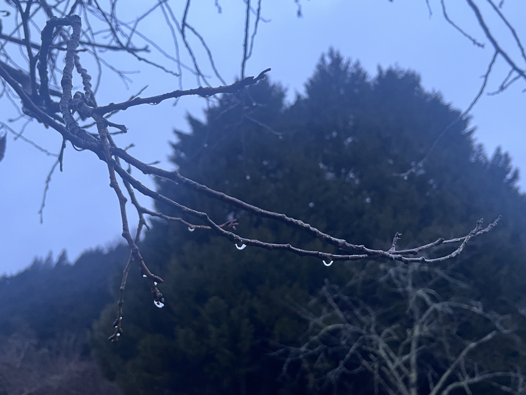 枝々が雨粒を持っています.