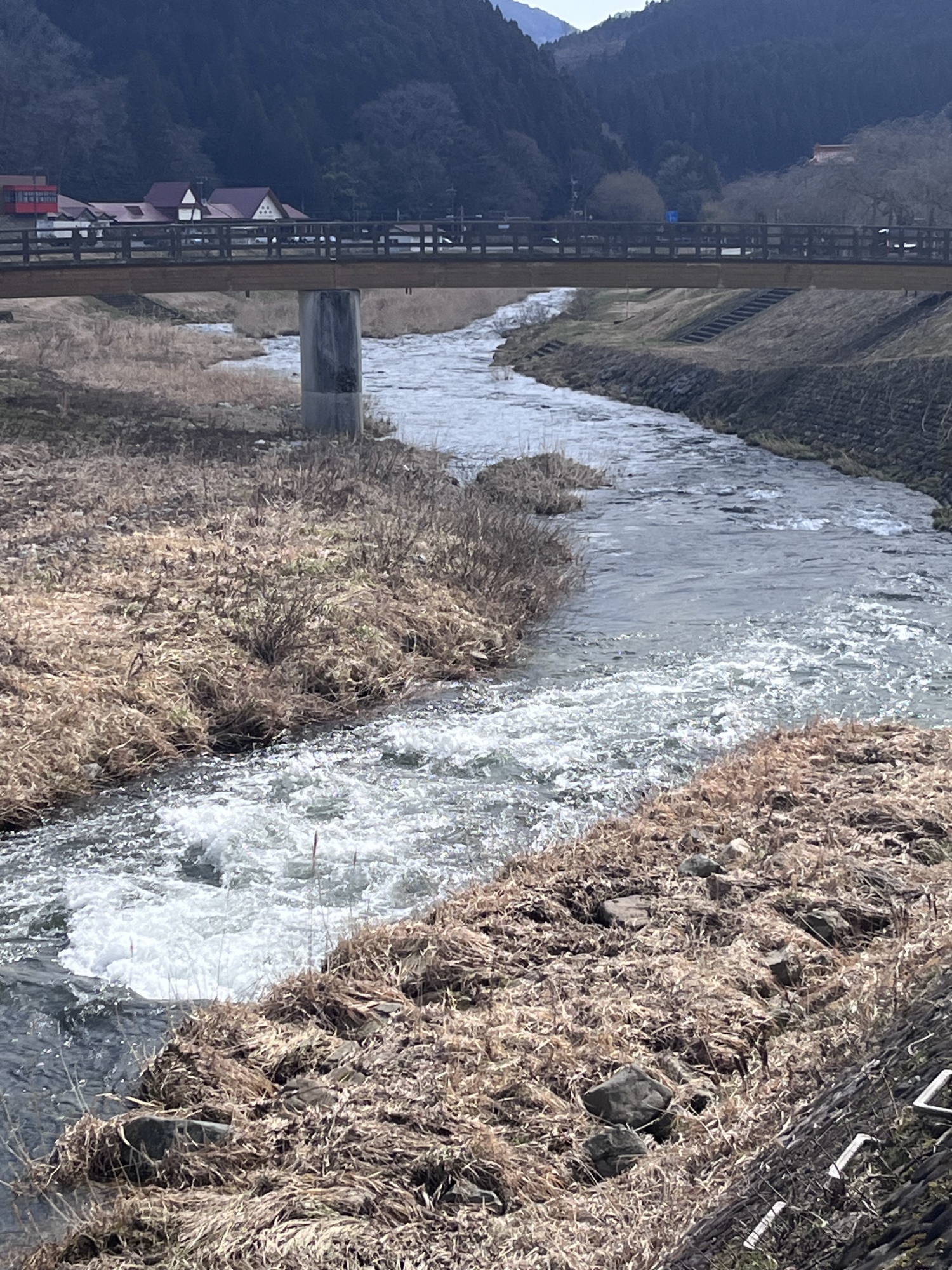 今日も水量多し、新庄川.