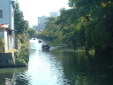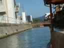 先行の舟と,左折の様子。新栄橋の手前で左折です。 |