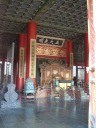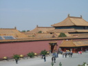 | 内廷にも勿論,結構,大きな殿などもあります。坤寧宮があり,その後「交秦殿」(左写真)もあり,そして,乾清宮に続きます。中ほどの「正大光明」は清代の順治帝の御筆とのことです。この辺りは,建物も近く甍の波って感じですね。 |