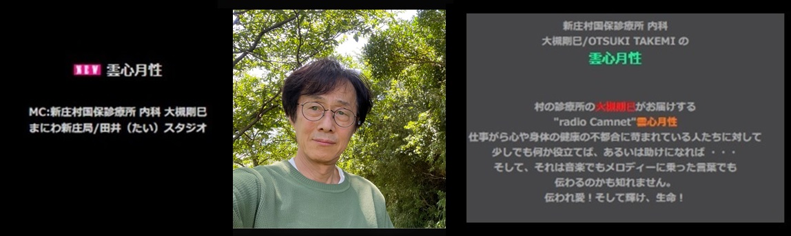 | 村の診療所の大槻剛巳がお届けする"radio Camnet"雲心月性!仕事がら心や身体の健康の不都合に苛まれている人たちに対して少しでも何か役立てば、あるいは助けになれば