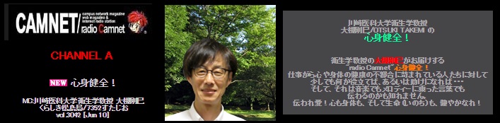 | 川崎医科大学衛生学教授 大槻剛巳/OTSUKI TAKEMI の 心身健全!衛生学教授の大槻剛巳がお届けする"radio Camnet"心身健全!仕事がら心や身体の健康の不都合に苛まれている人たちに対して少しでも何か役立てば、あるいは助けになれば