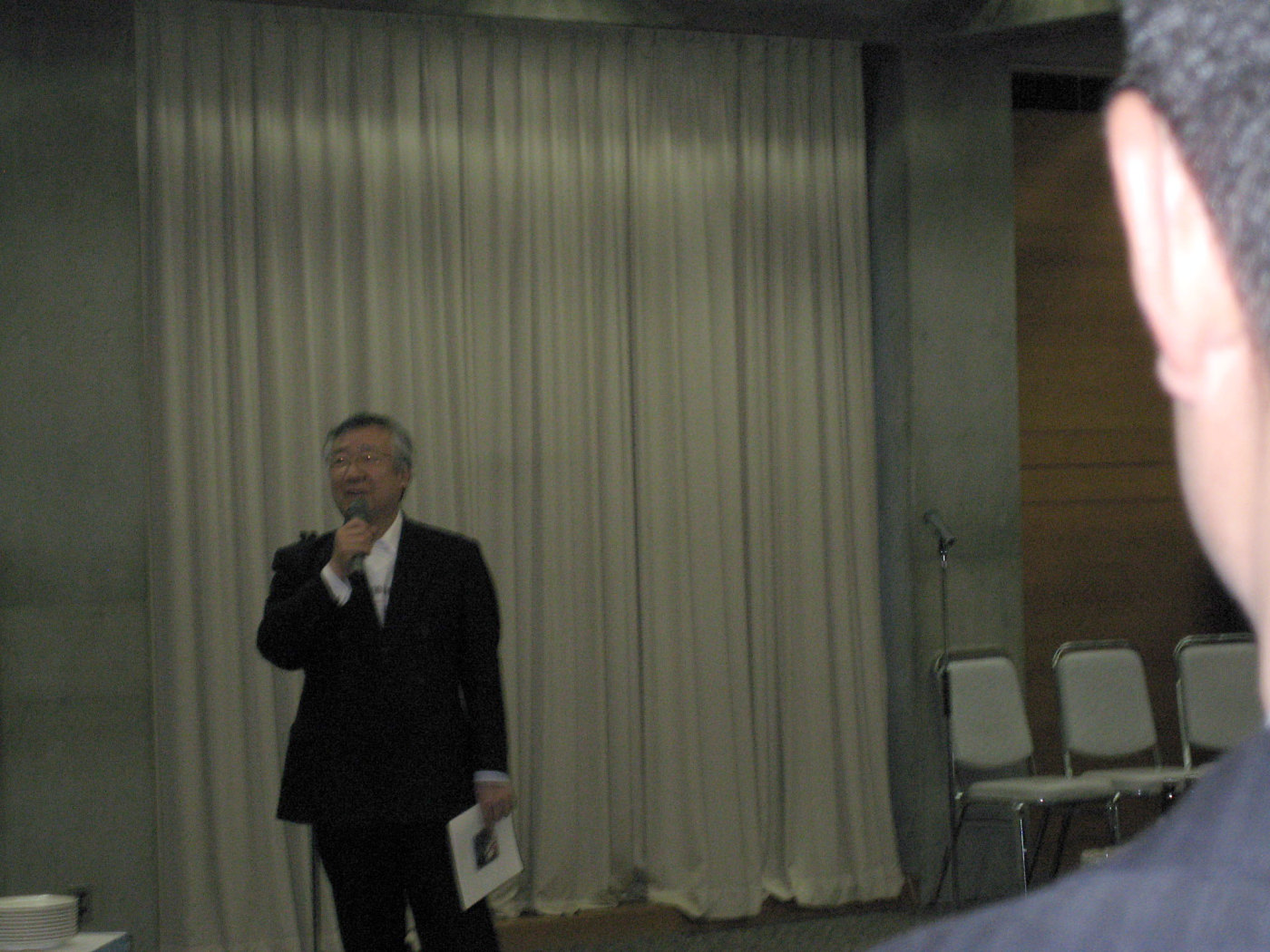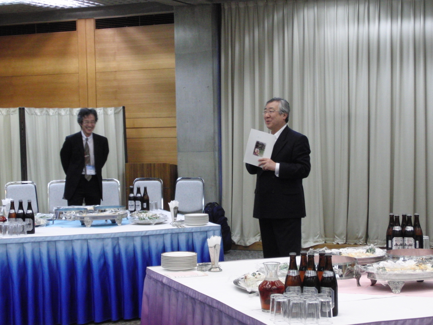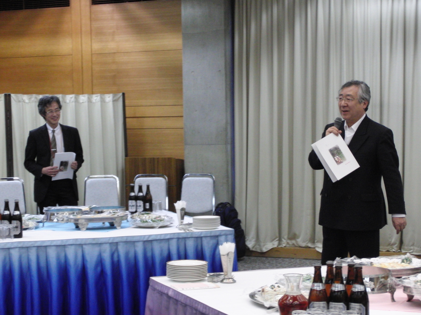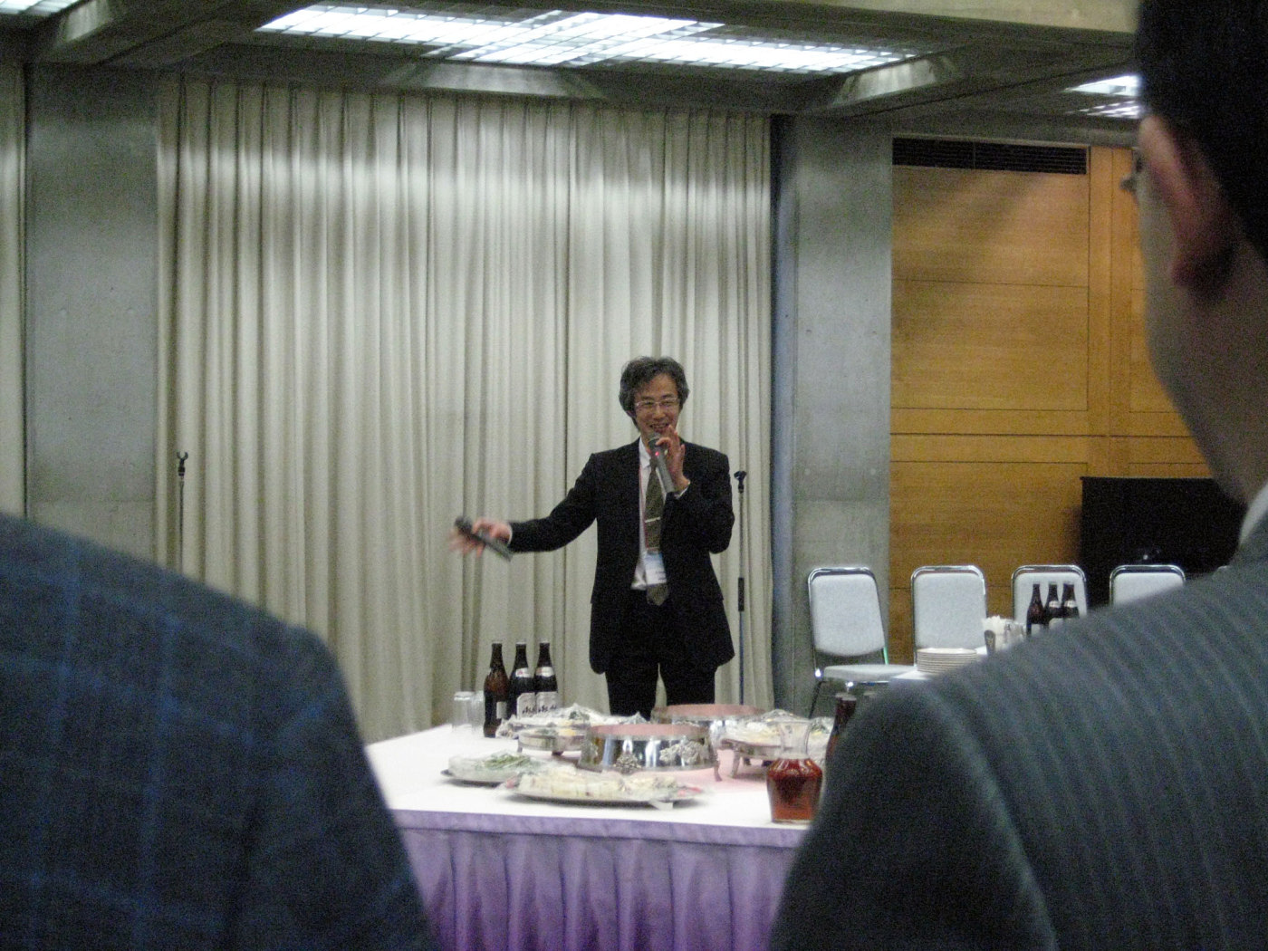 | Prof. Otsuki was announcing to go fownstairs for party. |