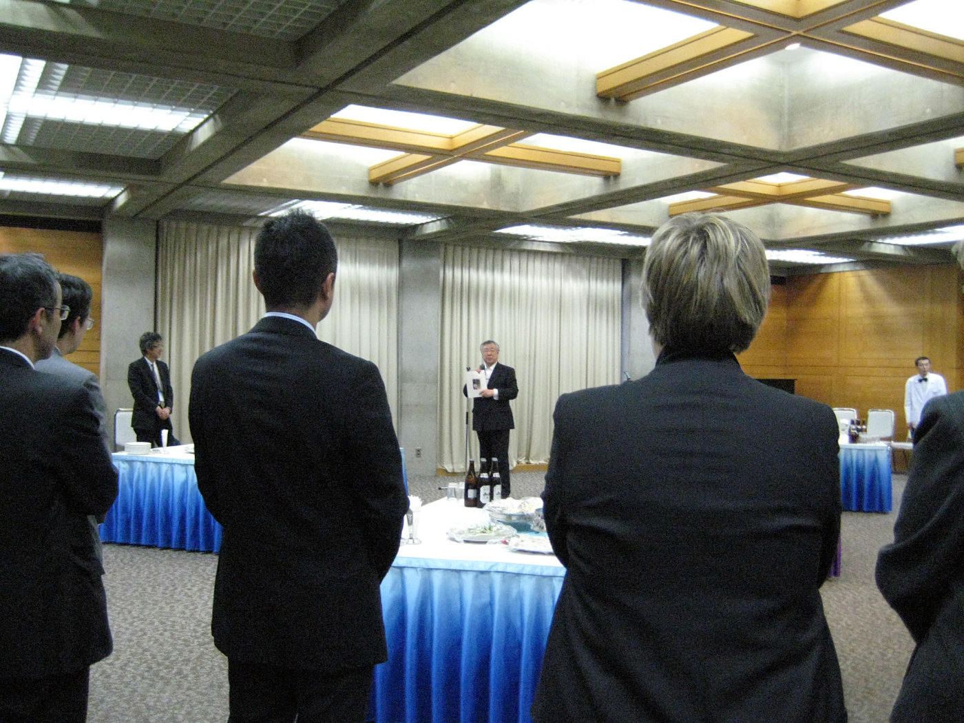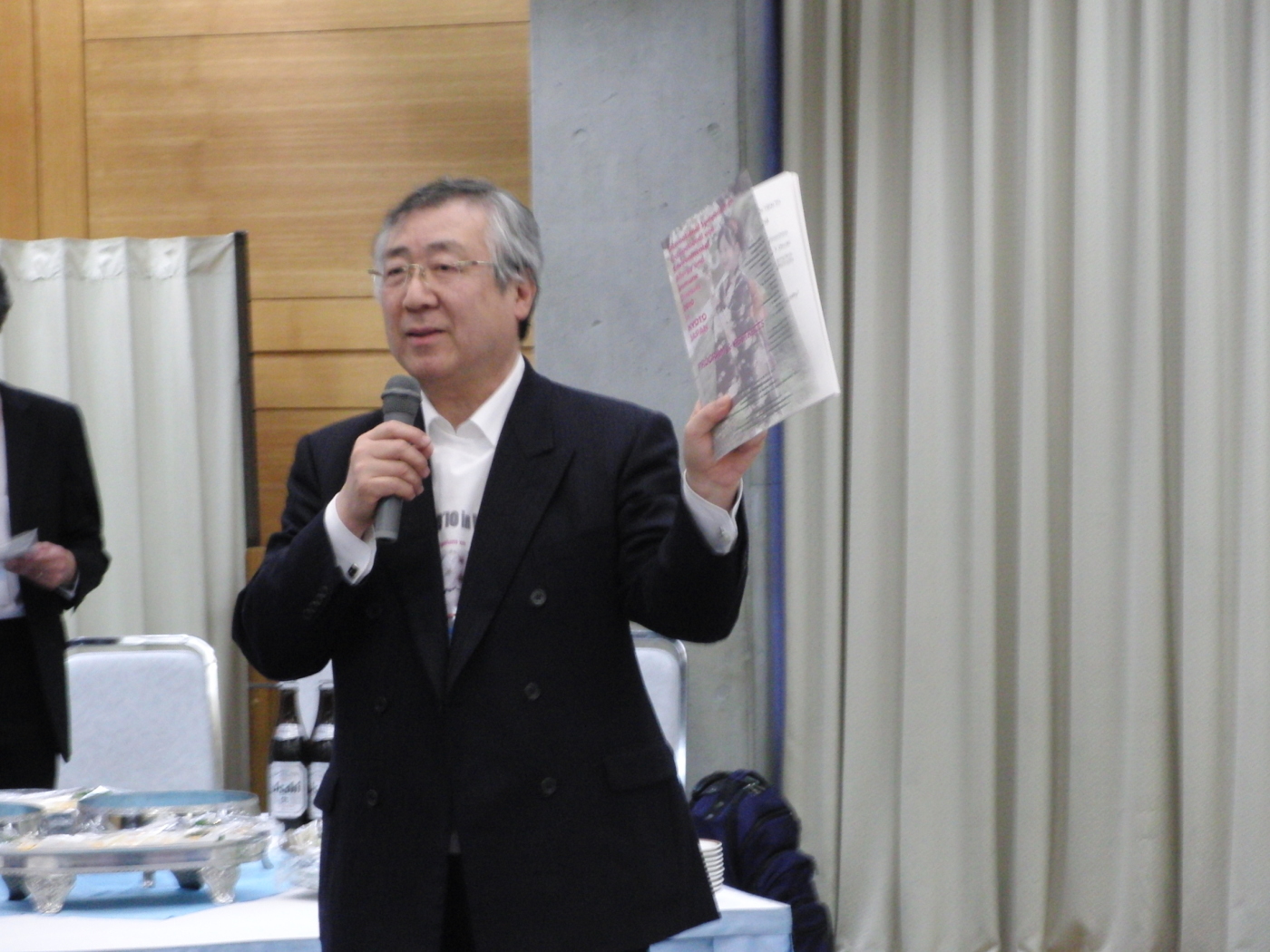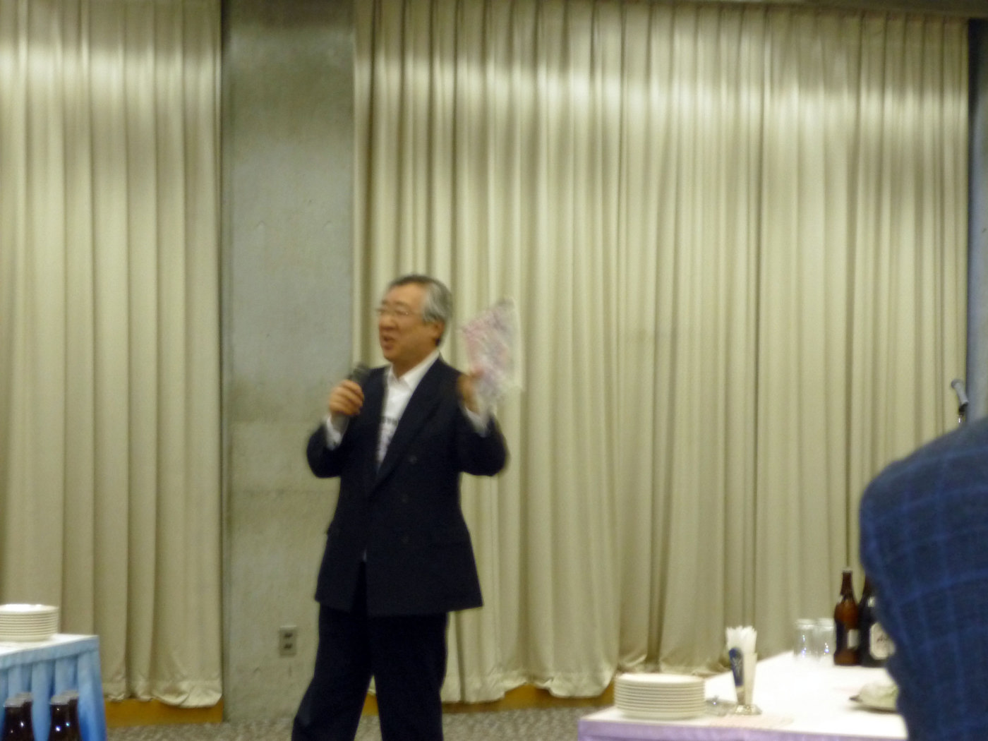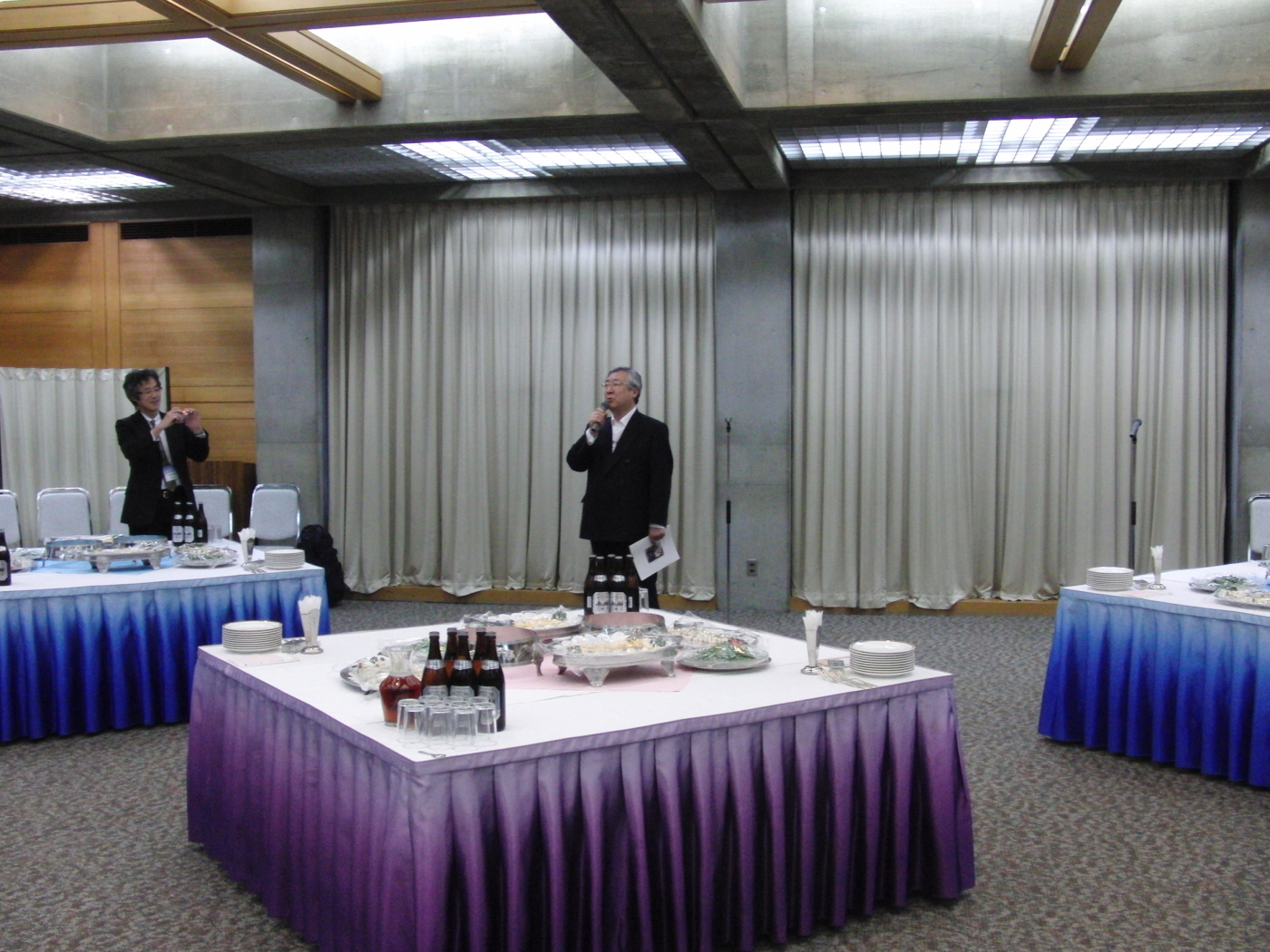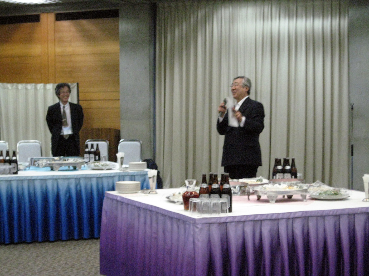 | Prof. Otsuki was announcing to go fownstairs for party. |