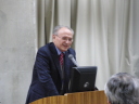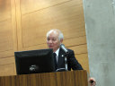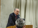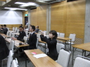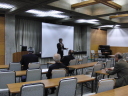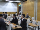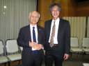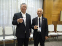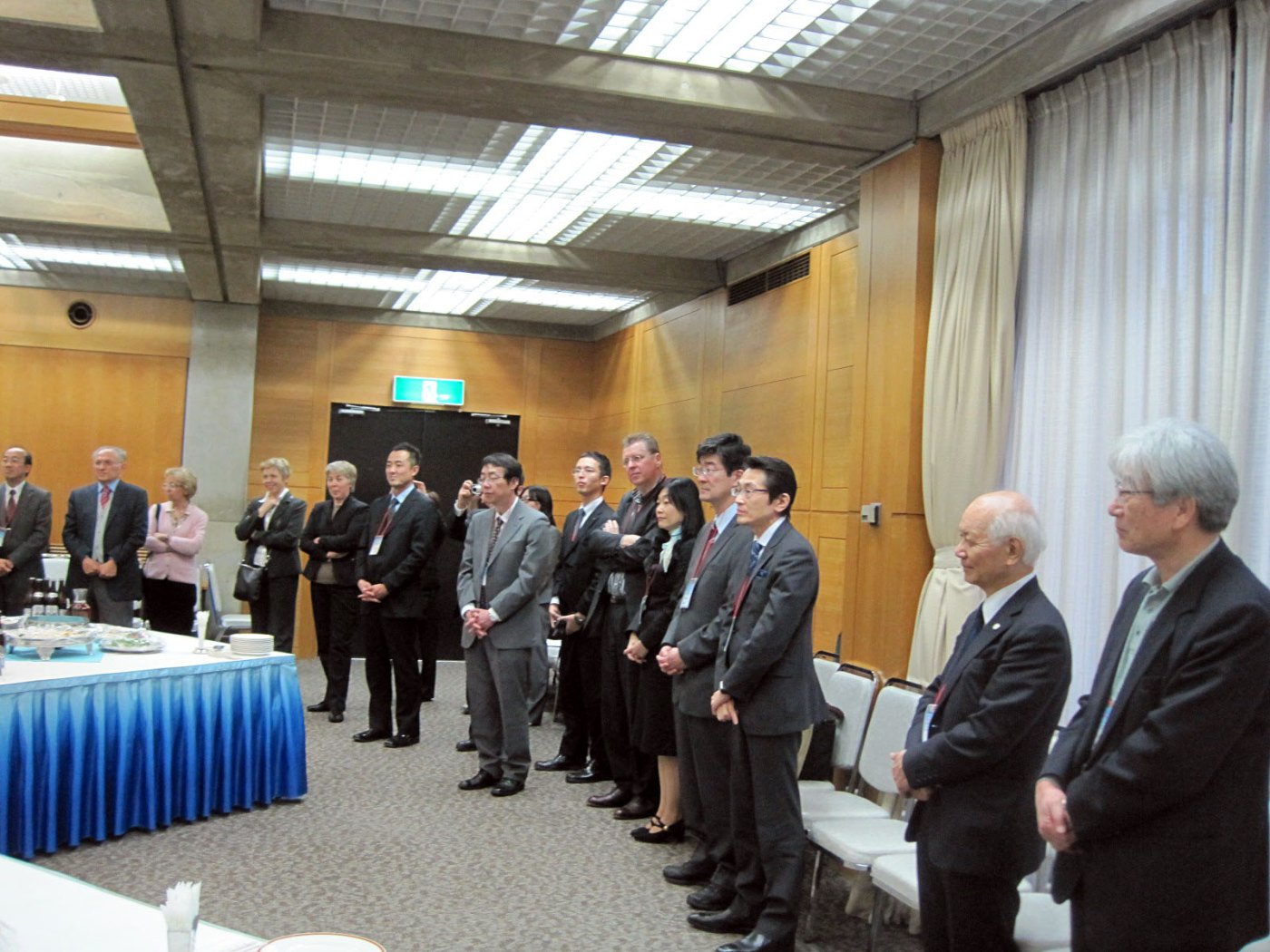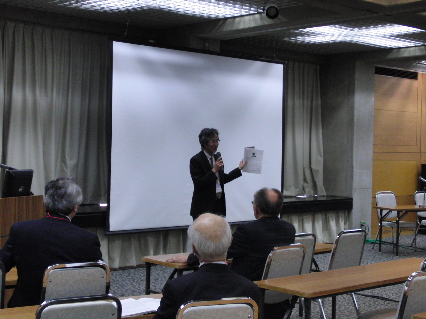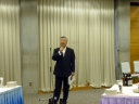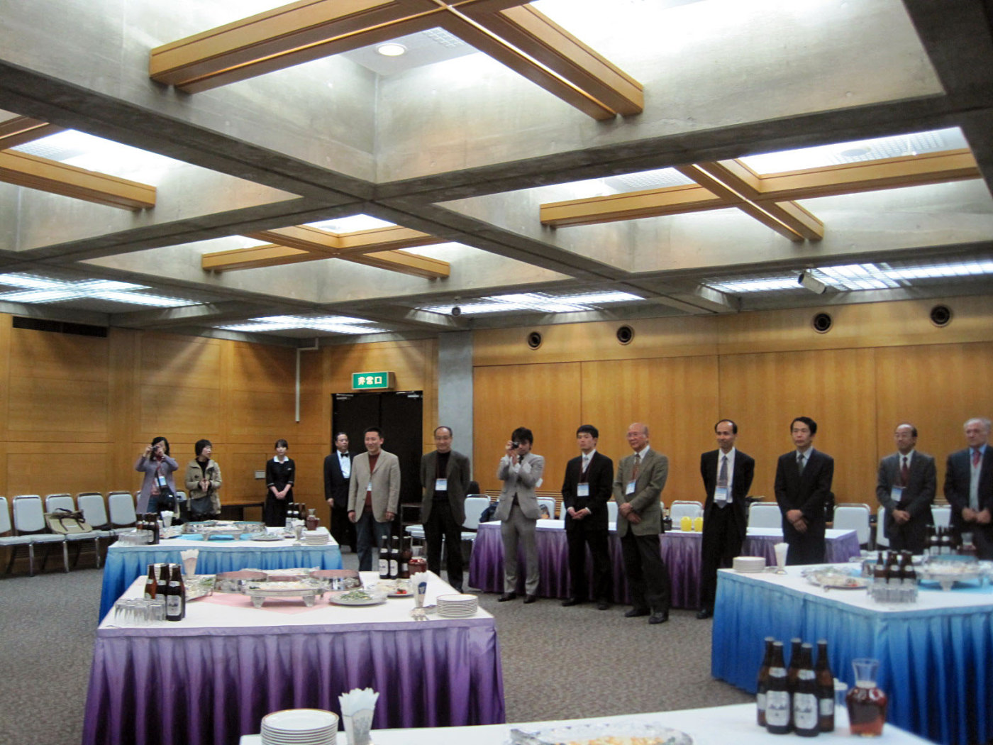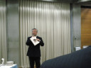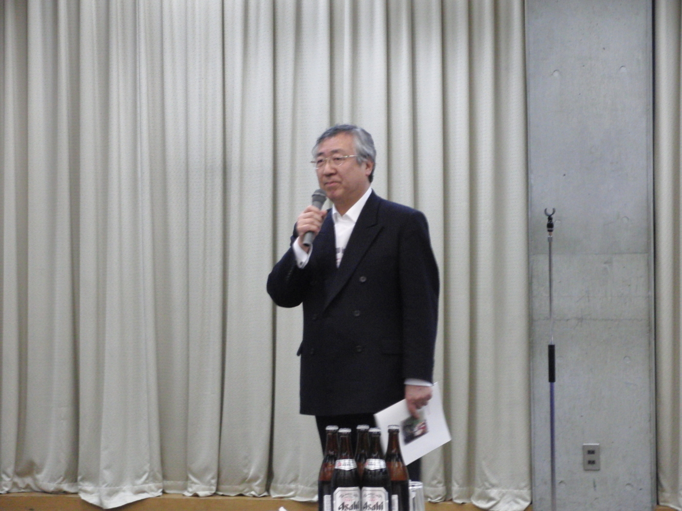 | Prof. Otsuki was announcing to go fownstairs for party. |