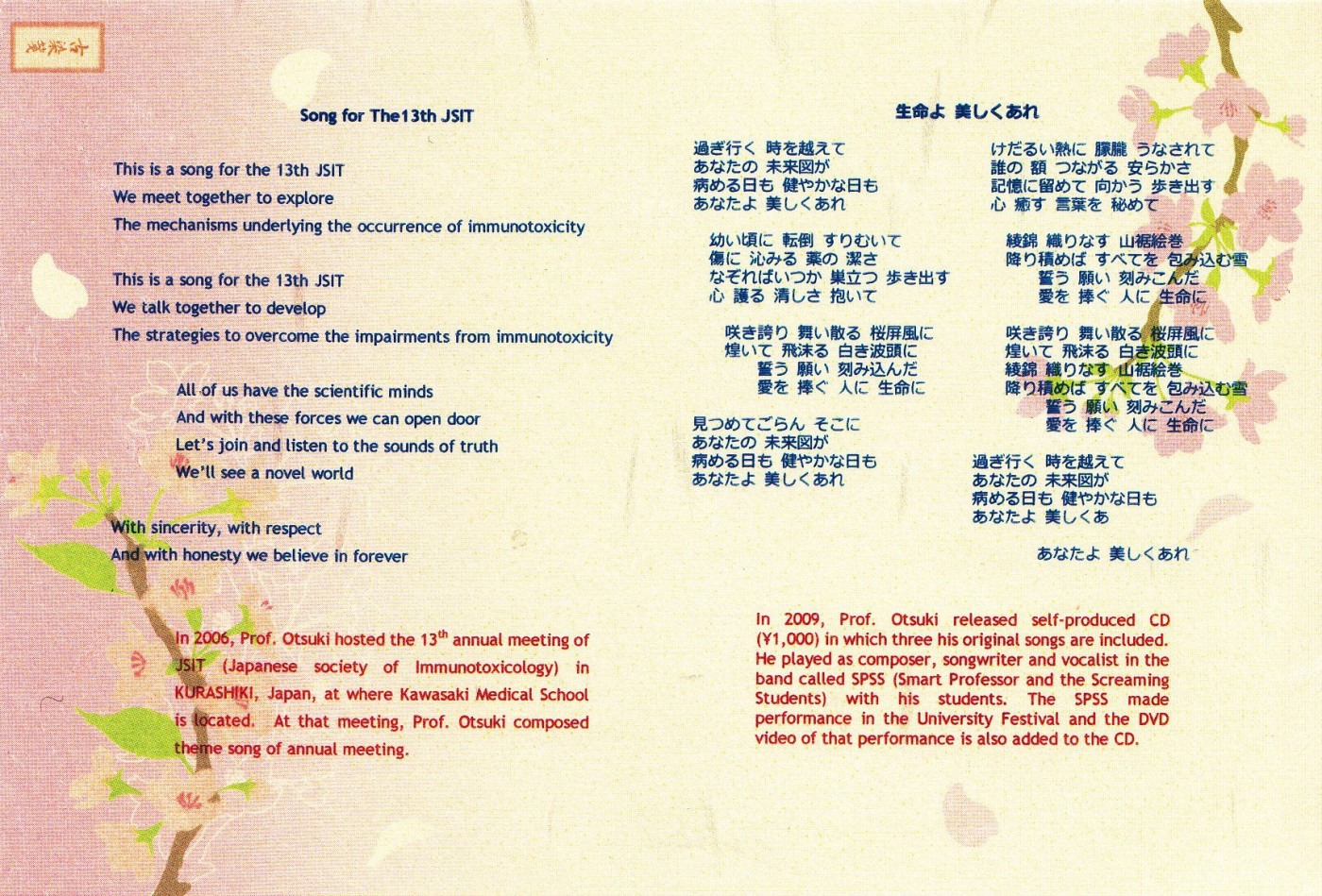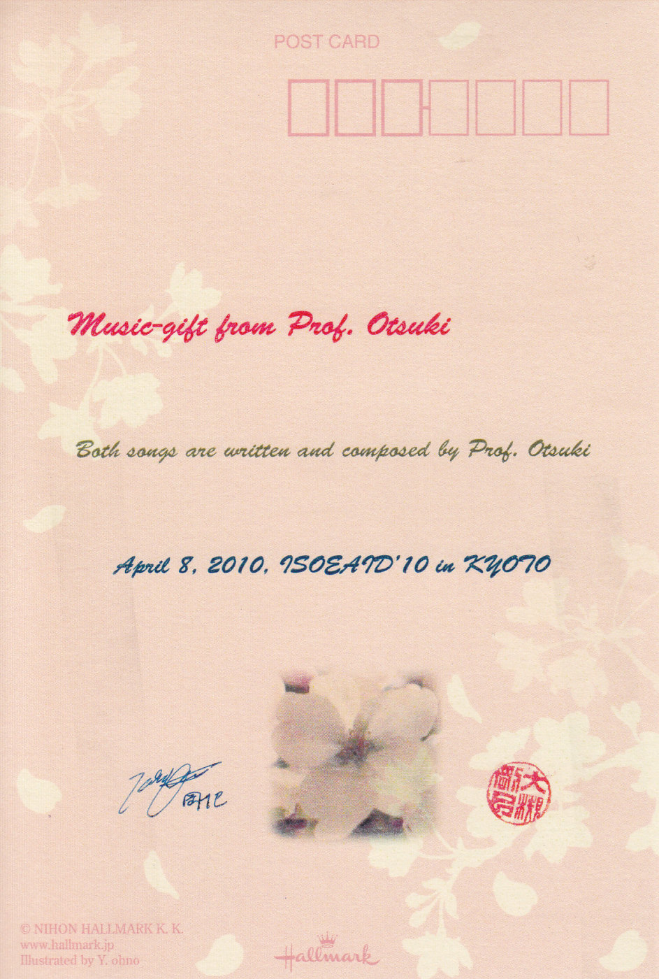 Then post-card presenting lyrics of music gifts for reception.